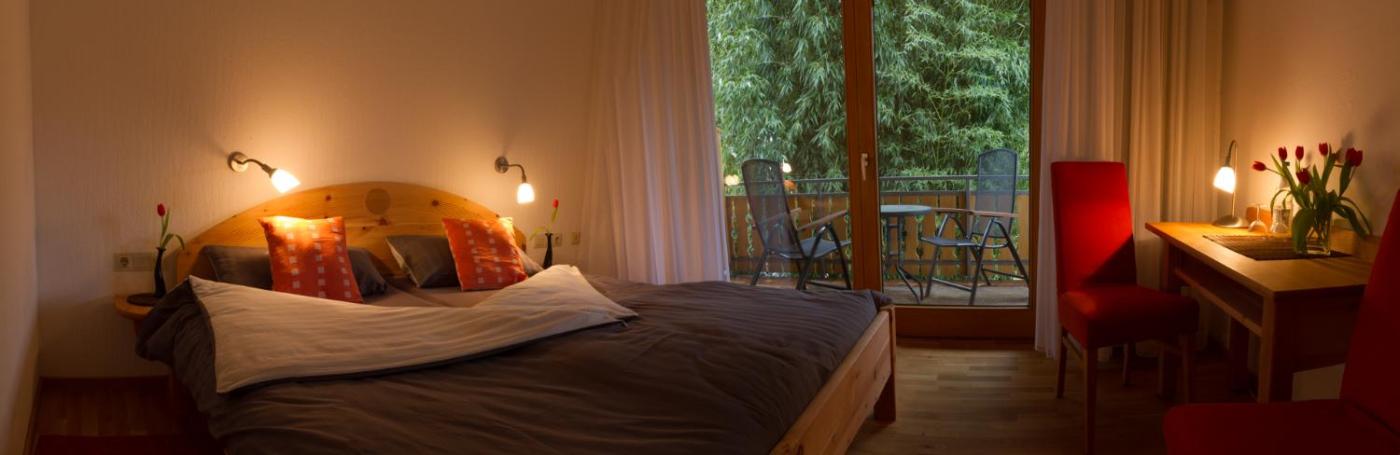 Doppelzimmer mit Balkon. Dieses Doppelzimmer verfügt über einen Flachbild-Sat-TV, ein eigenes Bad sowie einen Balkon mit Gartenblick. In der Wohneinheit ist 1 Bett vorhanden. ;