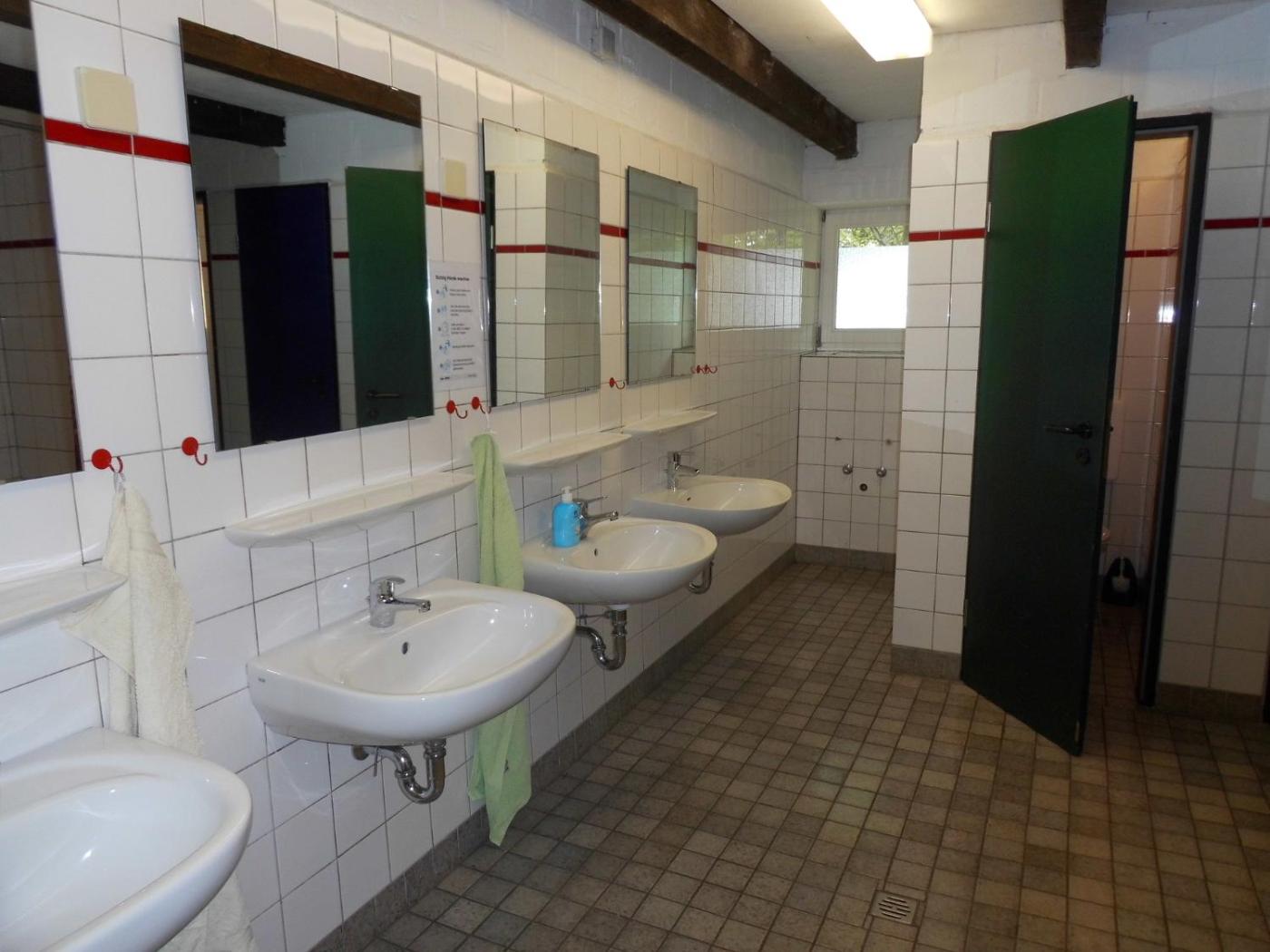Dreibettzimmer mit Gemeinschaftsbad. Providing a private entrance, a tea and coffee maker and a wardrobe, this triple room includes a shared bathroom. This wheelchair accessible triple room features a pool with a view, a seating area and a low bathroom sink. The unit offers 3 beds. ;