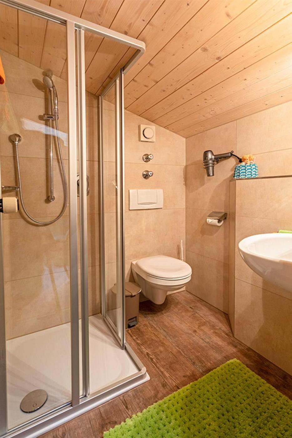 Ein voll ausgestattetes eigenes Badezimmer mit einer Dusche und einem Haartrockner ist vorhanden.