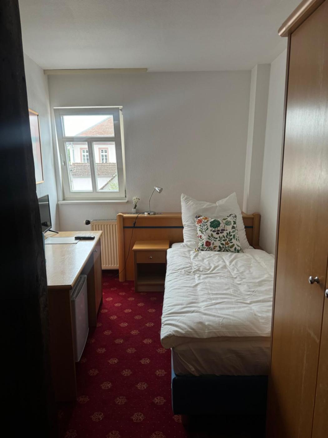 Einzelzimmer. Dieses Einzelzimmer verfügt über ein eigenes Bad mit einer Dusche und einem Haartrockner. Kostenlose Pflegeprodukte sind ebenfalls vorhanden. Das Einzelzimmer verfügt über einen Kleiderschrank, Heizung und Stadtblick. Die Wohneinheit ist mit 1 Bett ausgestattet.