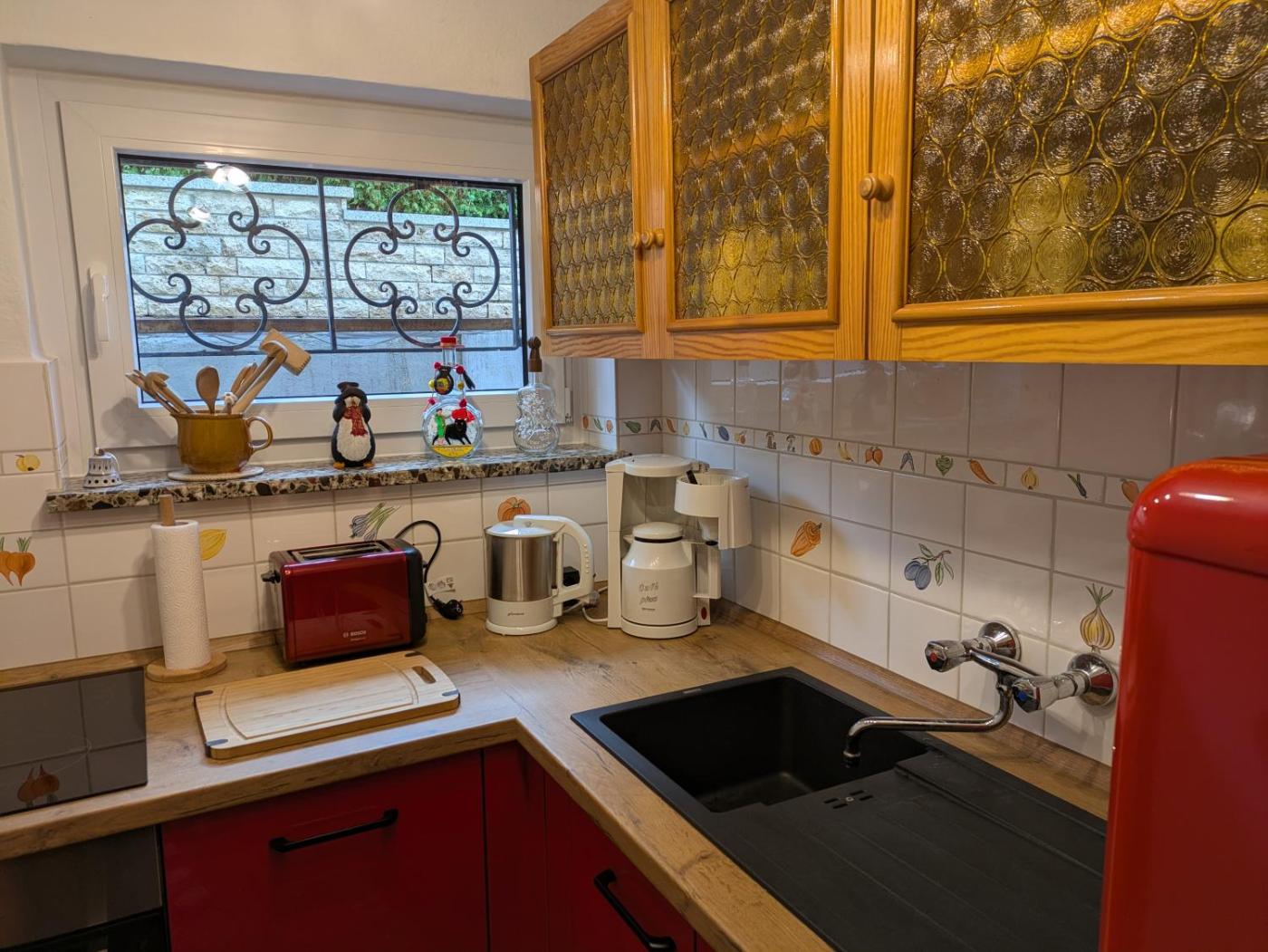 Haus mit 2 Schlafzimmern. Featuring a private entrance, this holiday home consists of 1 living room, 2 separate bedrooms and 1 bathroom with a shower and a hairdryer. Guests will find a stovetop, a refrigerator, a dishwasher and kitchenware in the fully equipped kitchen. The holiday home also offers a barbecue. Boasting a terrace with garden views, this holiday home also provides a coffee machine and a flat-screen TV. The unit offers 3 beds.