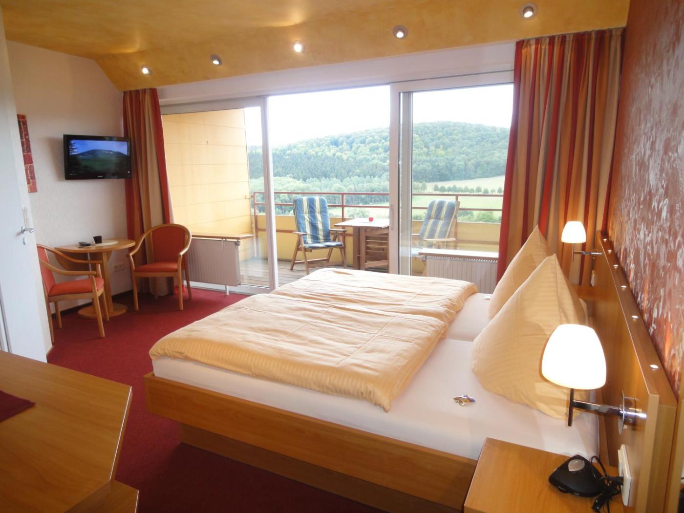 Ruhige Lage, Blick auf Teutoburger Wald, Panoramaterrasse mit Liegestuehle, modernes und persoenliches Ambiente, WLAN im ganzen Haus (kostenfrei), Freizeitraum, Lift, Sauna- und Fitnessbereich. Solarium und Fahrradvermietung gegen Gebühr.