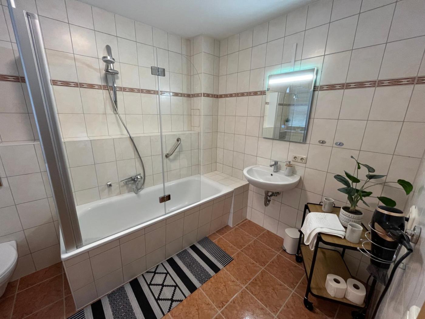 Apartment mit 1 Schlafzimmer. Featuring a private entrance, this apartment also is comprised of 1 bedroom, a seating area and 1 bathroom with a bath and a shower. The well-fitted kitchen features a stovetop, a refrigerator, kitchenware and an oven. Boasting a terrace with garden views, this apartment also offers a tea and coffee maker and a flat-screen TV. The unit offers 1 bed.