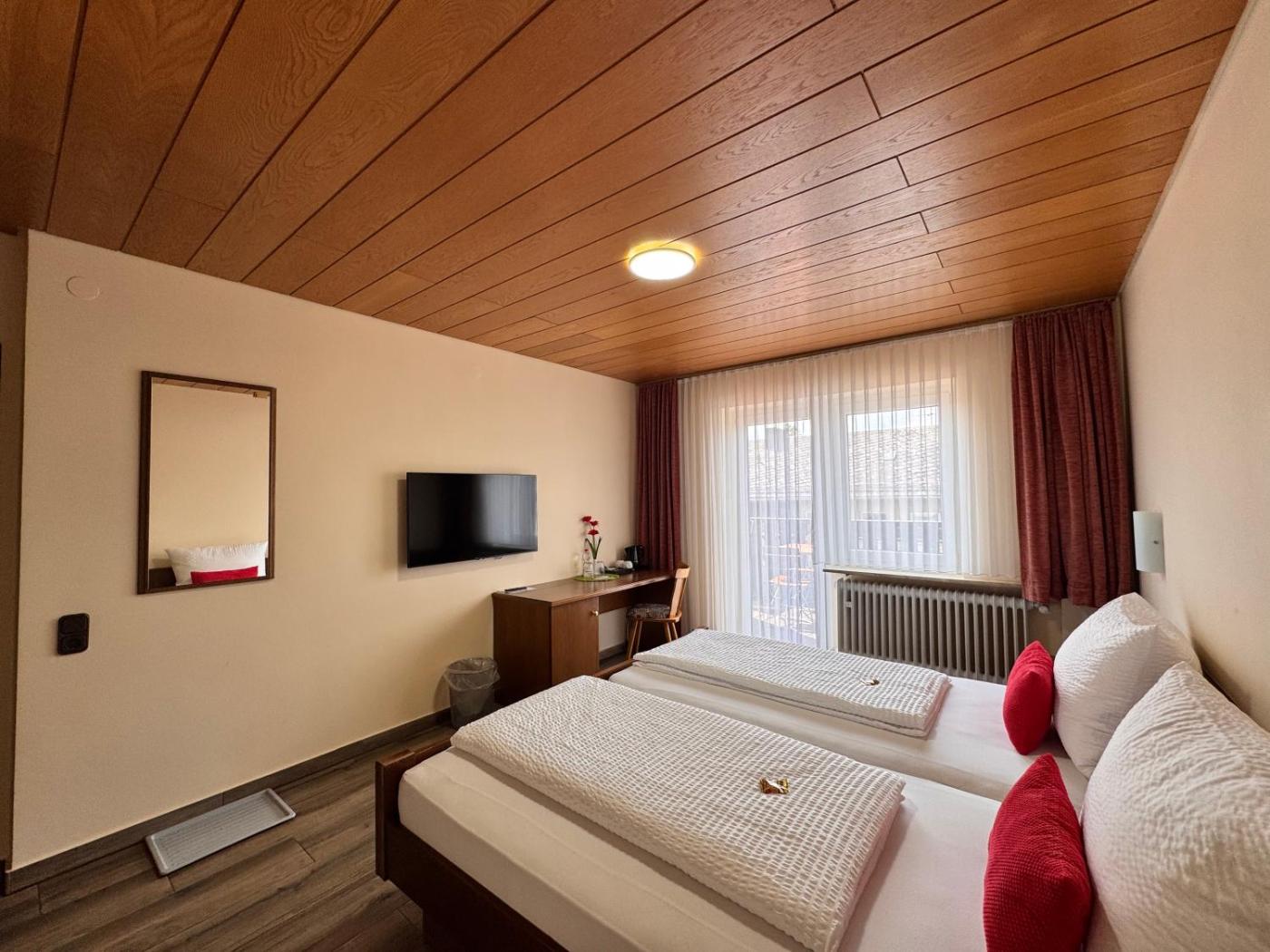 Standard Doppelzimmer. Providing free toiletries, this double room includes a private bathroom with a shower and a hairdryer. The double room features parquet floors, a seating area with a flat-screen TV, a tea and coffee maker, a wardrobe as well as city views. The unit offers 1 bed. ;