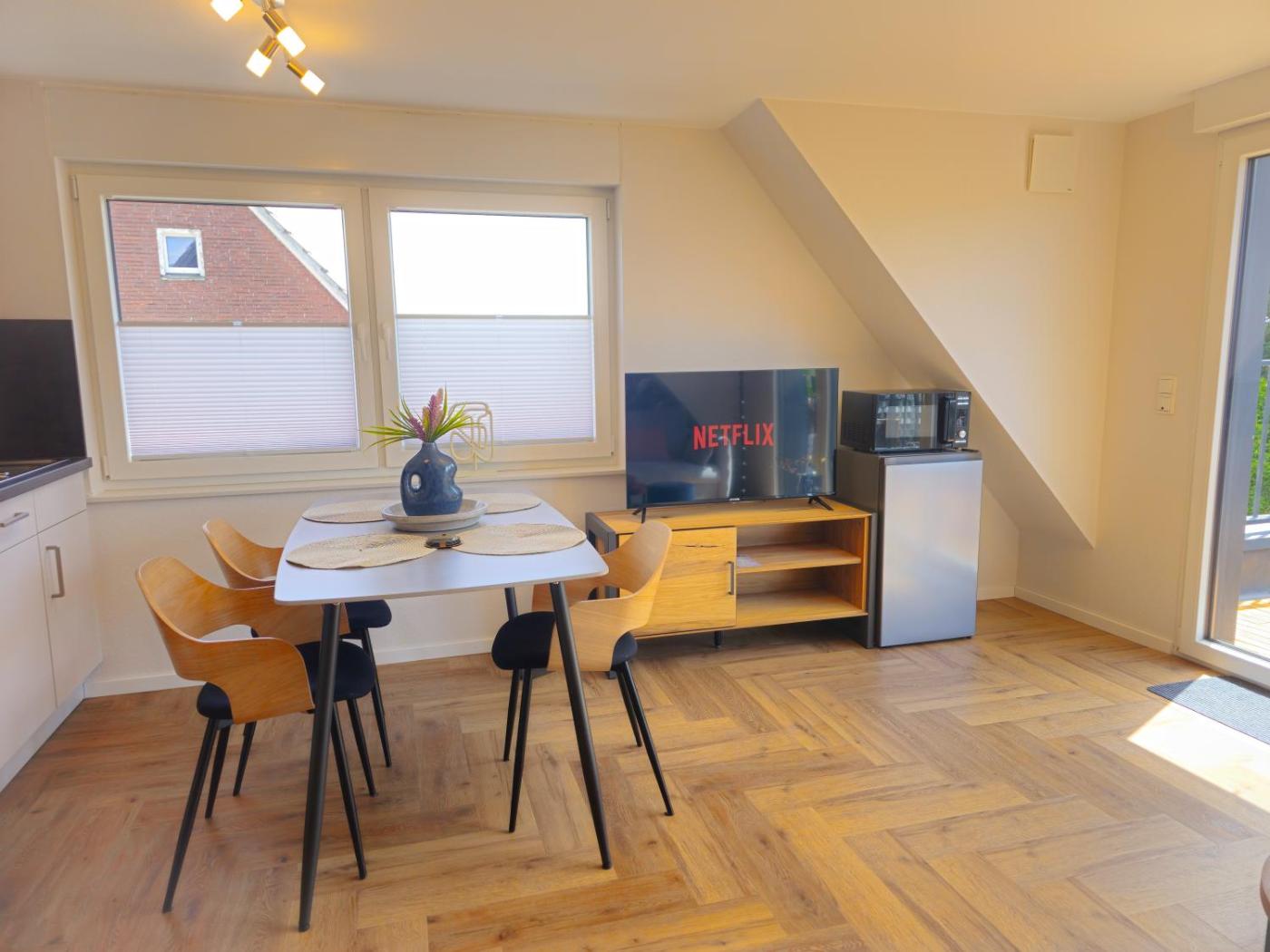 In der Unterkunft EcoCube 2 Haren - Sonnenbalkon, Badewanne, Waschmaschine ist jedes Zimmer eingerichtet mit einem Schreibtisch, einer Terrasse mit Gartenblick, einem eigenen Badezimmer, einem TV, Bettwäsche und Handtüchern. Alle Zimmer bieten den Gästen einen Kühlschrank.
