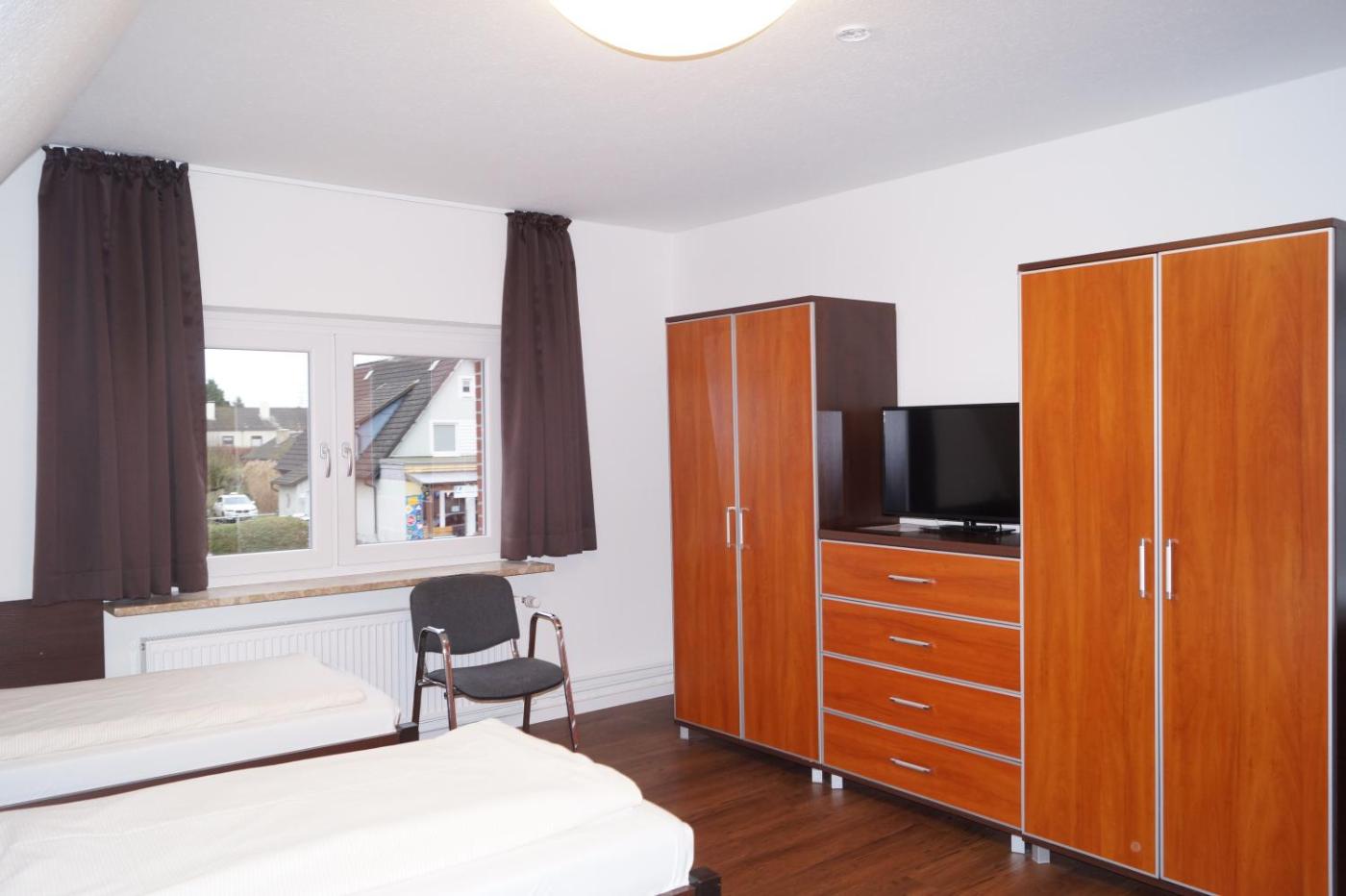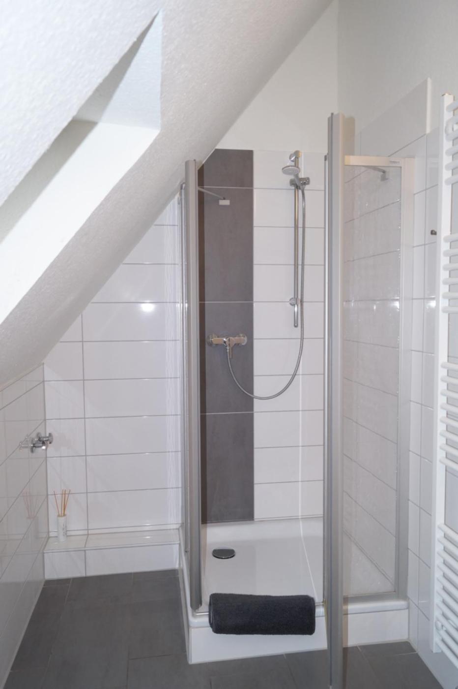 Dreibettzimmer mit Bad. The triple room offers a coffee machine, a wardrobe, as well as a private bathroom boasting a shower. This triple room has a high chair for children, heating and a flat-screen TV. The unit has 3 beds.