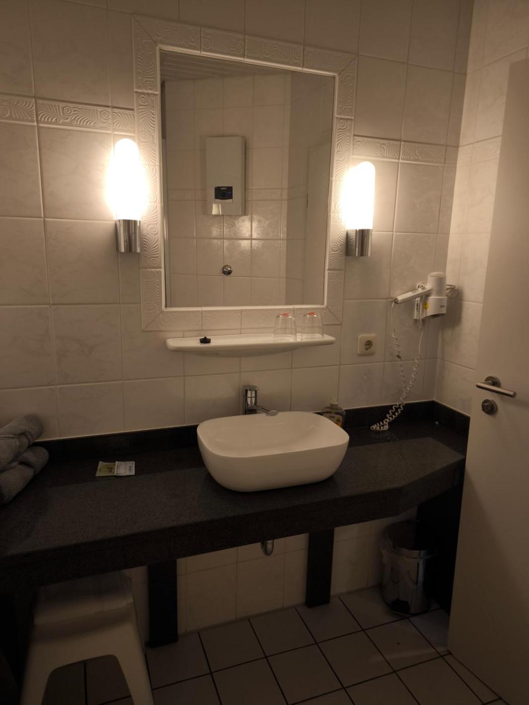 Einzelzimmer. Featuring free toiletries, this single room includes a private bathroom with a shower and a hairdryer. The single room has carpeted floors, a seating area with a flat-screen TV with cable channels, a private entrance, a wardrobe, as well as heating. The unit has 1 bed. ;
