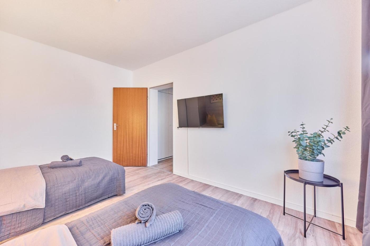 Apartment mit 2 Schlafzimmern. The apartment has 1 bedroom and 1 bathroom with a bath and free toiletries. In the fully equipped kitchen, guests will find a stovetop, a refrigerator, a dishwasher and kitchenware. This apartment features a washing machine, a coffee machine, flat-screen TV, as well as chocolate for guests. The unit has 2 beds.