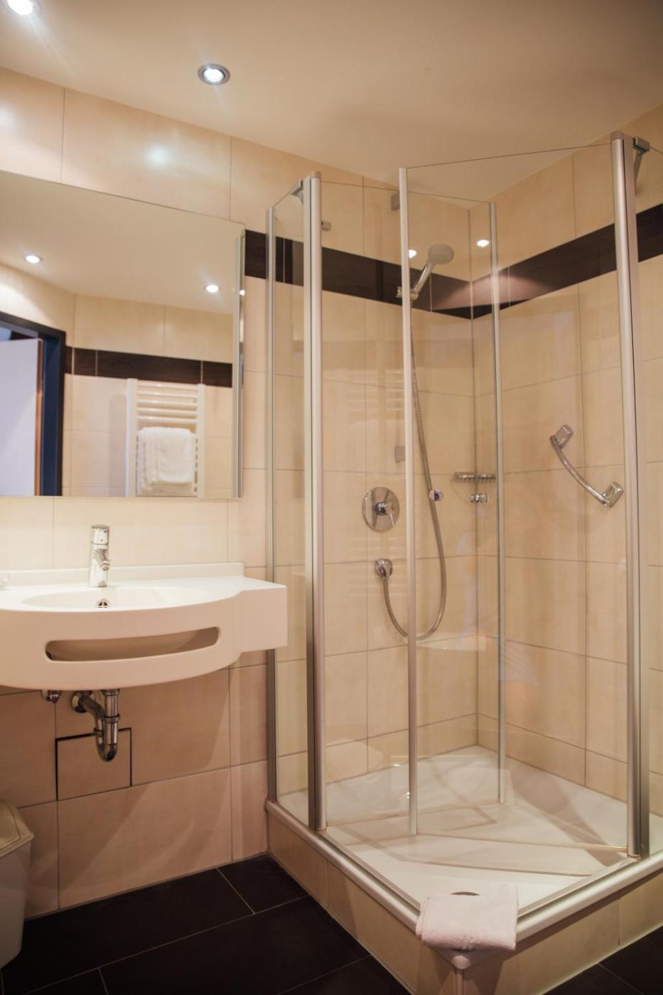 Einzelzimmer mit Bad. Dieses Einzelzimmer verfügt über ein eigenes Bad mit einer Dusche, einem Haartrockner und kostenlosen Pflegeprodukten. Das Einzelzimmer bietet einen Kleiderschrank, Heizung und einen Flachbild-Kabel-TV. In dieser Wohneinheit befindet sich 1 Bett. ;