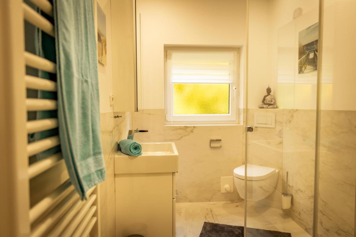 Haus mit 2 Schlafzimmern. The sauna is the standout feature of this holiday home. The holiday home features 2 bedrooms, 2 bathrooms and a kitchen. The holiday homes kitchen is available for cooking and storing food. The spacious holiday home provides a washing machine, soundproof walls, heating, as well as a terrace. The unit offers 2 beds.