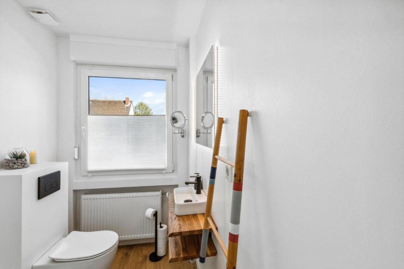 Apartment mit 1 Schlafzimmer. This apartment includes a kitchen, a seating area, 1 separate bedroom and 1 bathroom with a shower and a hairdryer. Meals can be prepared in the well-fitted kitchen, which has a stovetop, a refrigerator, a dishwasher and kitchenware. The apartment offers a flat-screen TV with streaming services, soundproof walls, a tea and coffee maker, a dining area as well as garden views. The unit has 2 beds. The washing machine is in the basement.