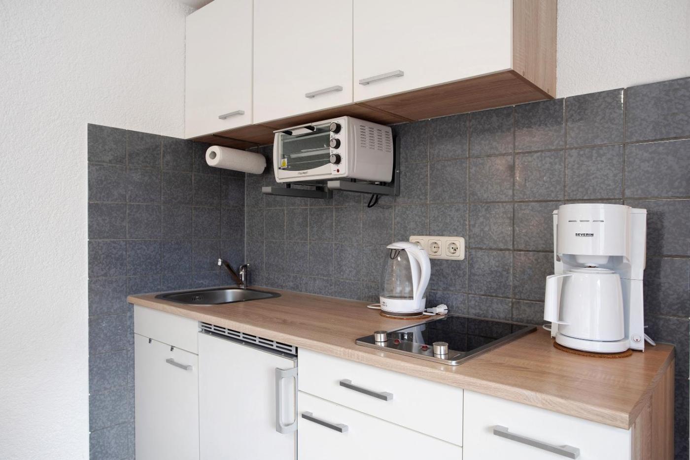 Diese Ferienwohnung ist ausgestattet mit einem Satelliten TV. Die Küche ist versehen mit einem Ofen und einem Toaster sowie einer Kaffeemaschine und einem Wasserkocher.