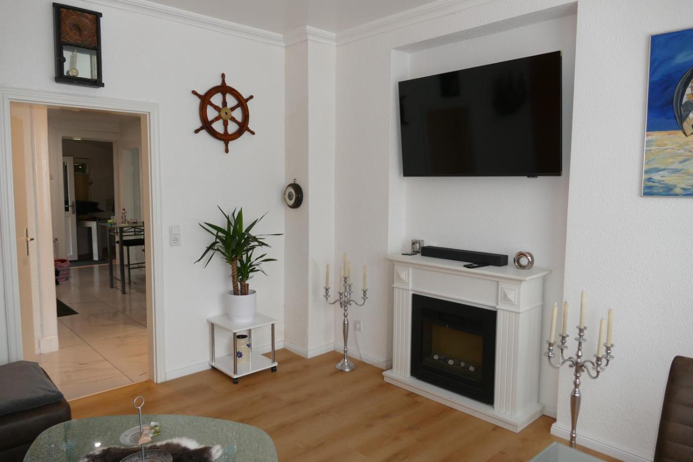 Apartment mit 2 Schlafzimmern. This apartment features a fireplace. Featuring a private entrance, this spacious apartment also comprises 1 living room, 2 separate bedrooms and 1 bathroom with a walk-in shower. Guests will find a stovetop, a refrigerator, a dishwasher and kitchenware in the well-equipped kitchen. The apartment also provides guests with a barbecue. Boasting a terrace with city views, this apartment also provides a washing machine and a flat-screen TV with satellite channels. The unit offers 3 beds.