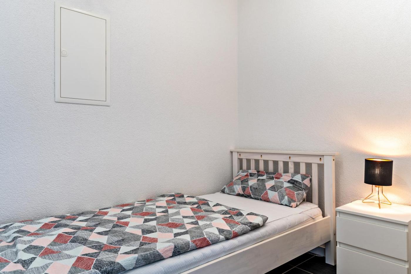 Diese Ferienwohnung besteht aus 2 Schlafzimmern, einem Wohnzimmer, einer voll ausgestatteten Küche mit einem Ofen und einer Kaffeemaschine sowie 1 Badezimmer mit einer Dusche und kostenlosen Pflegeprodukten. In dieser Ferienwohnung werden Handtücher und Bettwäsche zur Verfügung gestellt.
