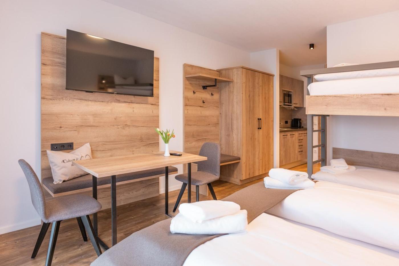 Doppel-Zweibettzimmer mit Zustellbett. The well-fitted kitchen features a stovetop, a refrigerator, a dishwasher and kitchenware. The spacious twindouble room offers soundproof walls, a coffee machine, a terrace with garden views as well as a private bathroom featuring a shower. The unit offers 2 beds. ;