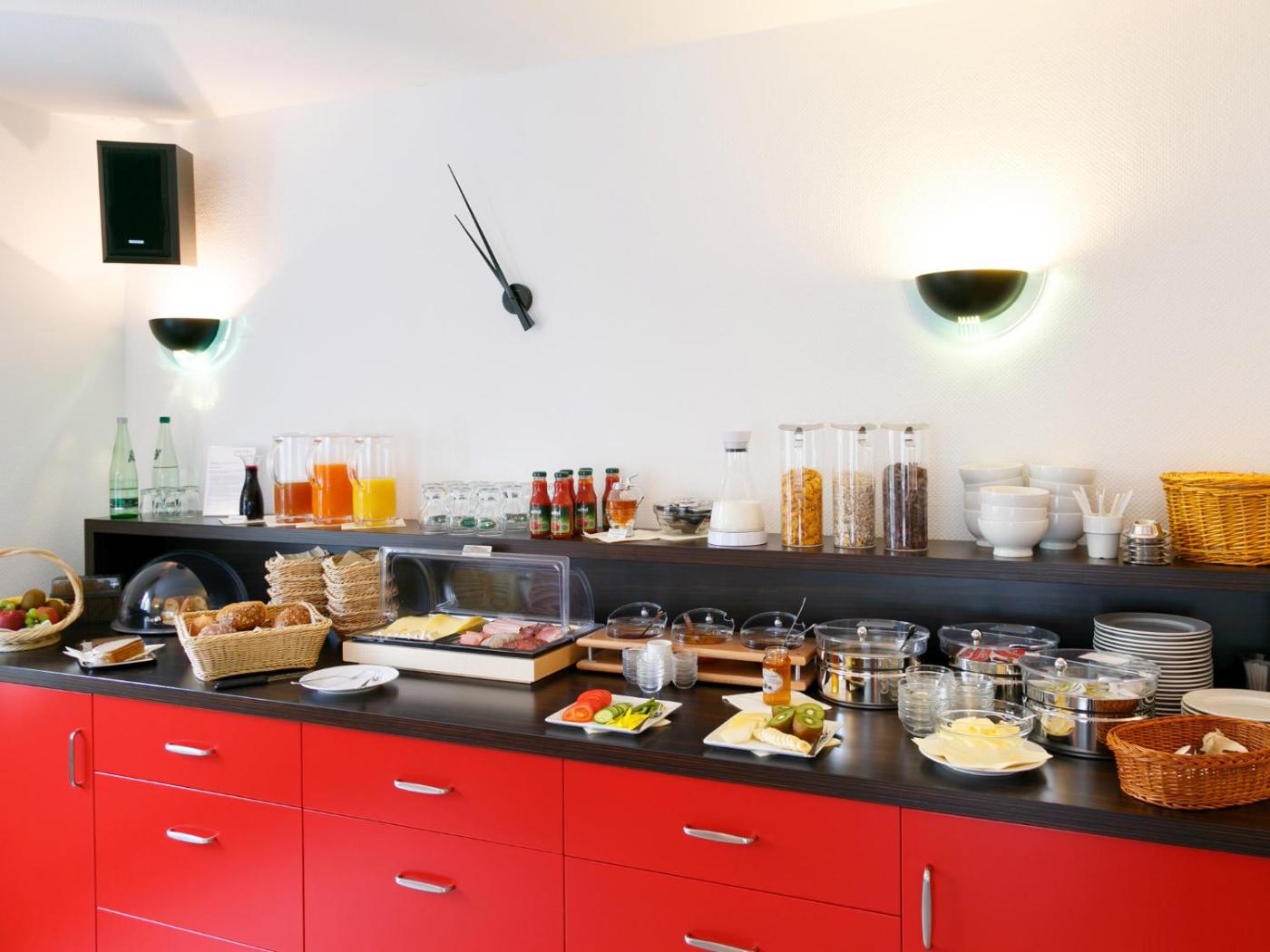 Morgens stärken Sie sich am Frühstücksbuffet im hellen und geräumigen Frühstücksraum des Hotel 7 Säulen GmbH. Darüber hinaus laden 5 Gehminuten entfernt mehrere Cafés, Restaurants und Bars zu einem Besuch ein.