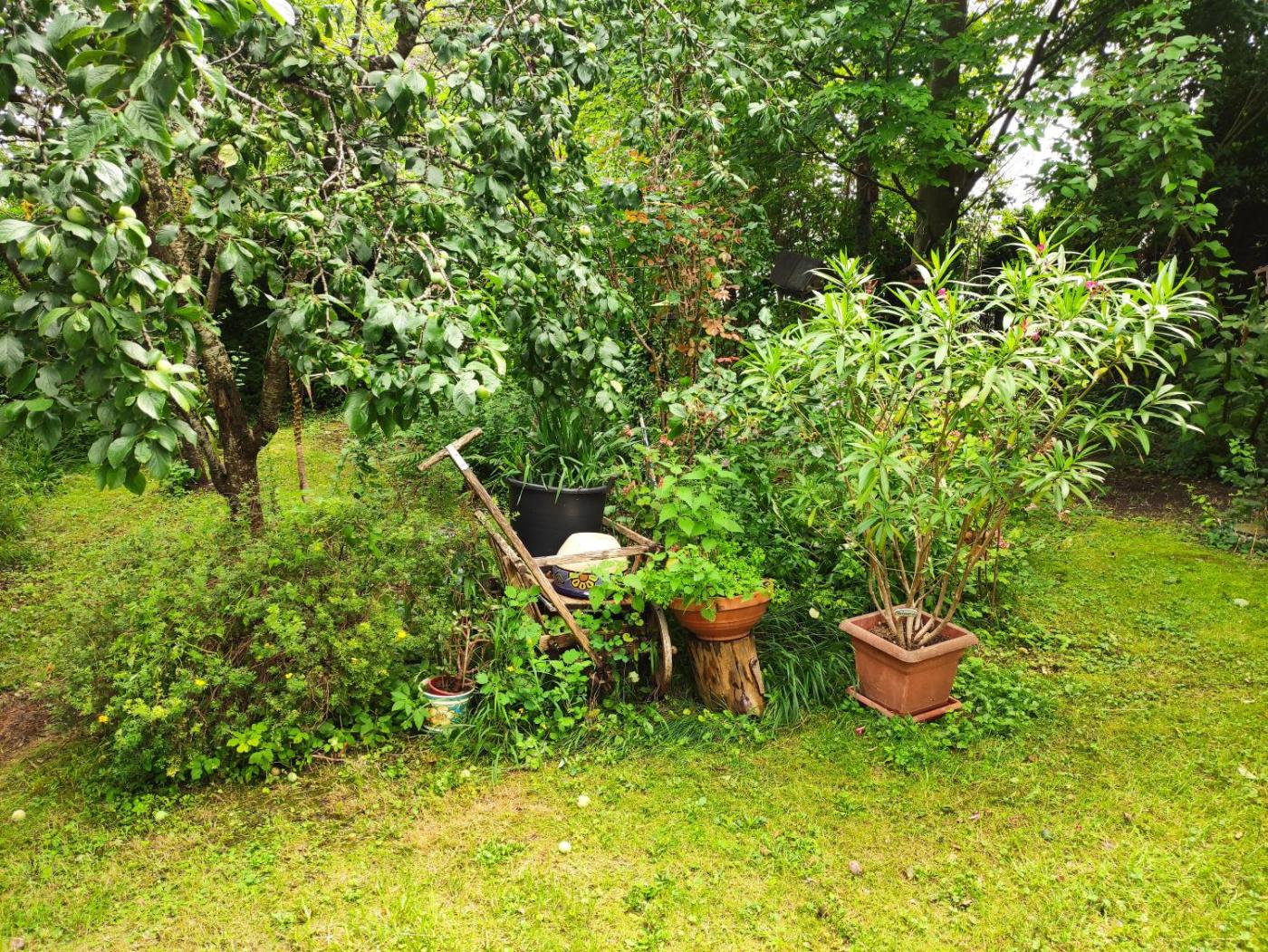 Doppelzimmer. Guests will find a stovetop, a refrigerator, a dishwasher and kitchenware in the fully equipped kitchen. The double room also provides guests with a barbecue. The double room provides a washing machine, a tea and coffee maker, a terrace with garden views as well as a shared bathroom featuring a walk-in shower. The unit offers 1 bed.