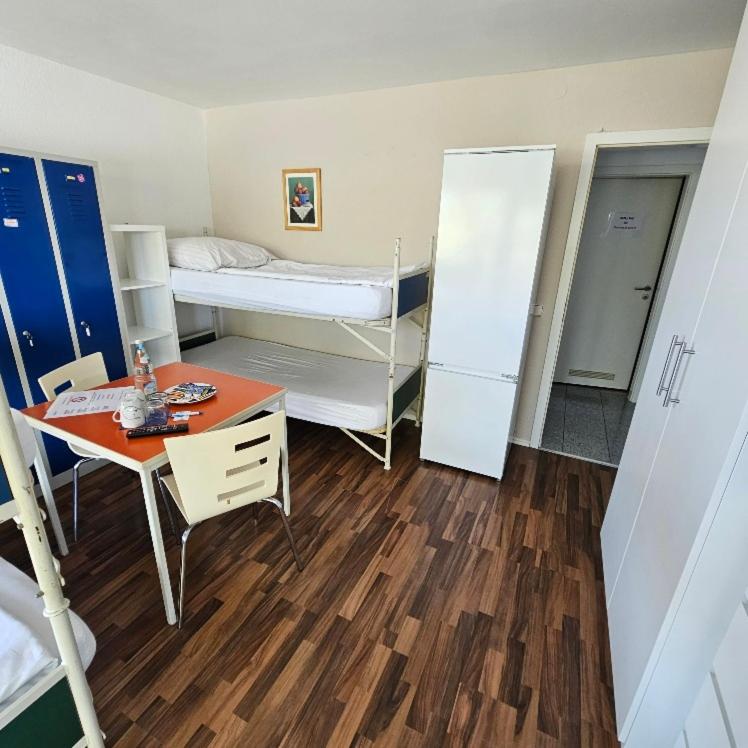 Vierbettzimmer mit Gemeinschaftsbad. In the fully equipped kitchen, guests will find a stovetop, a refrigerator, a dishwasher and kitchenware. The quadruple room provides a washing machine, a tea and coffee maker, a balcony with ancourtyard view as well as a shared bathroom featuring a bath. The unit offers 4 beds. ;