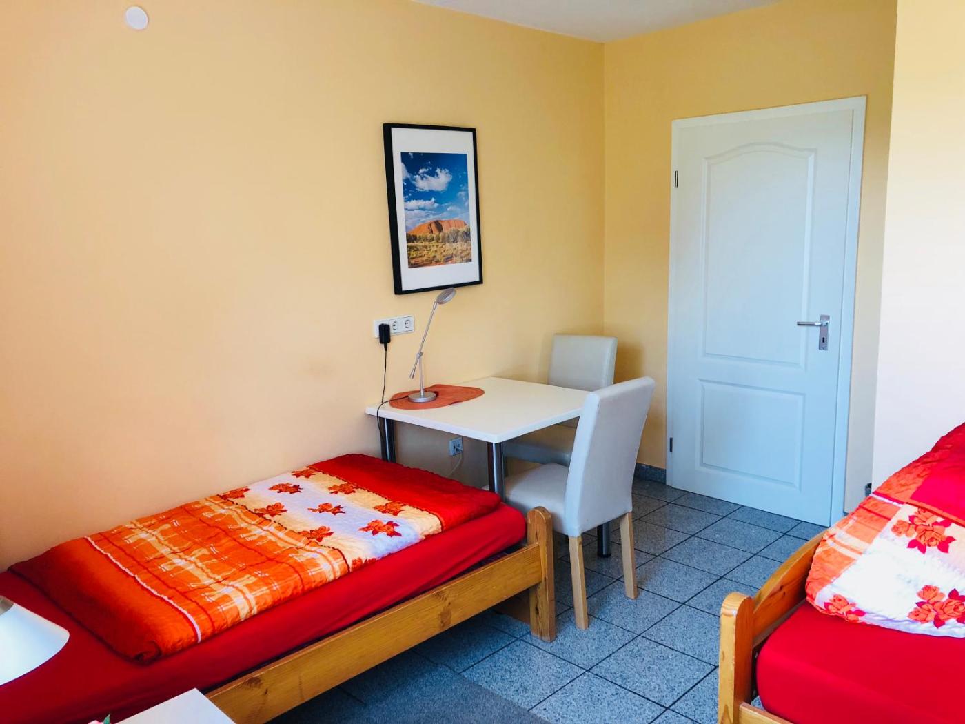Doppelzimmer mit Gemeinschaftsbad. In the fully equipped kitchen, guests will find a refrigerator, kitchenware, a microwave and a tea and coffee maker. This double room is comprised of a flat-screen TV with satellite channels, a shared bathroom as well as a balcony with garden views. The unit has 2 beds. ;