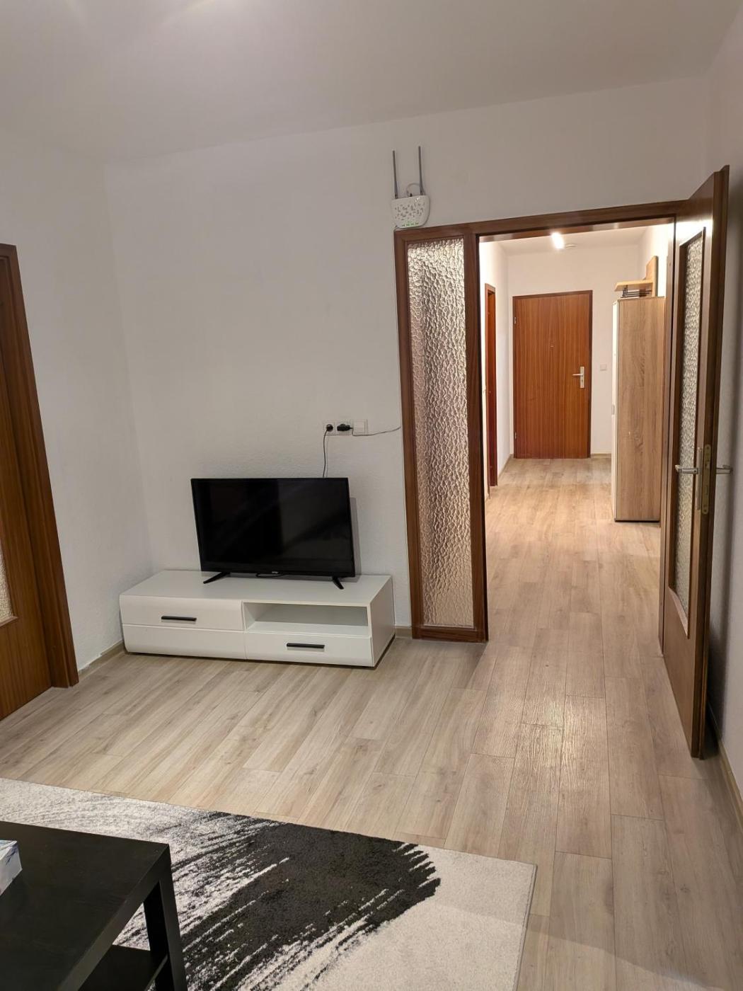 Doppelzimmer mit Gemeinschaftsbad. The well-fitted kitchen has a refrigerator, a dishwasher, kitchenware and an oven. Boasting a balcony with a quiet street view, this double room also offers a tea and coffee maker and a flat-screen TV. The unit has 2 beds.