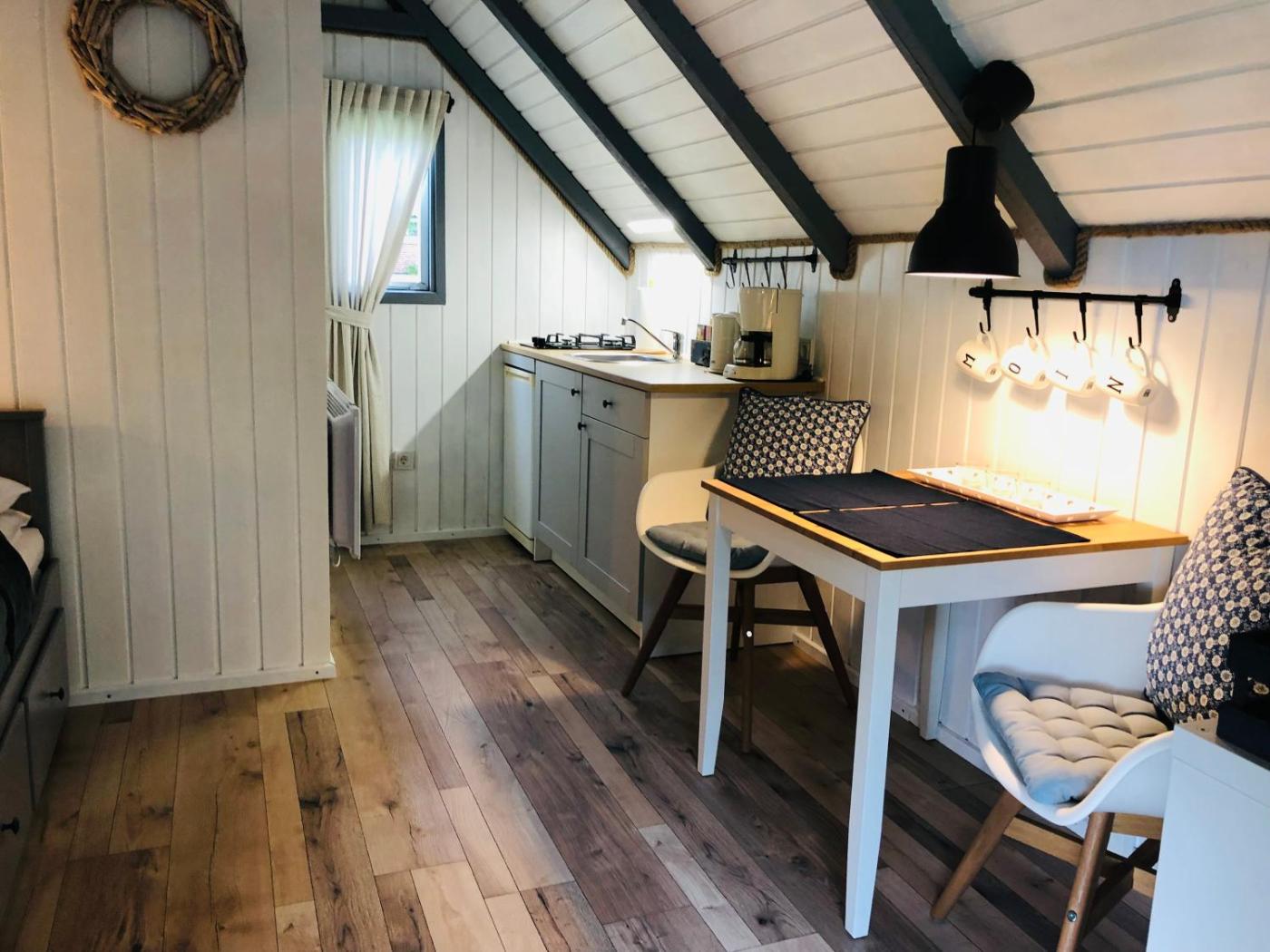 Dieses Ferienhaus mit einer Terrasse und Gartenblick hat 1 Schlafzimmer, ein Wohnzimmer, einen Flachbild-TV, eine gut ausgestattete Küche mit einem Kühlschrank und einem Ofen sowie 1 Badezimmer mit einer Dusche. In diesem Ferienhaus werden Handtücher und Bettwäsche zur Verfügung gestellt.