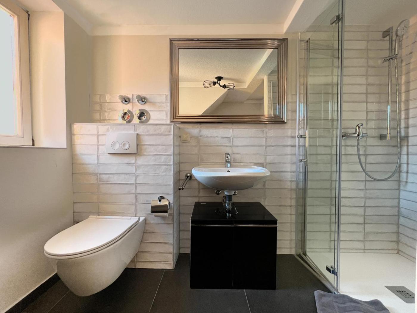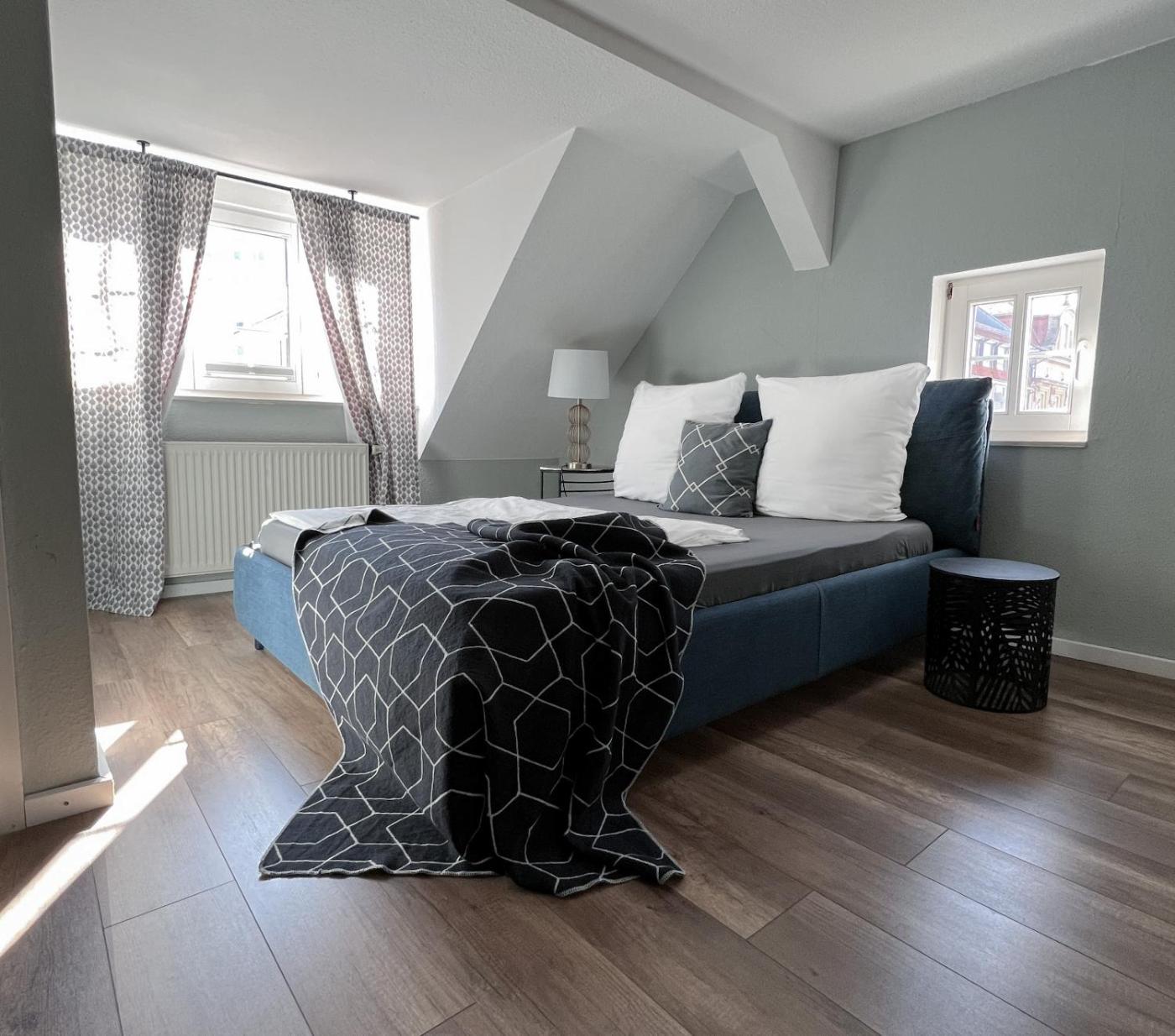 Ferienwohnung - Dachgeschoss. Diese Ferienwohnung verfügt über 1 Wohnzimmer, 1 separates Schlafzimmer sowie 1 Bad mit einer Dusche und einem Haartrockner. Mahlzeiten können in der Küche zubereitet werden, die mit einem Kochfeld, einem Kühlschrank, einer Geschirrspülmaschine und Küchenutensilien ausgestattet ist. Die Ferienwohnung bietet Tee- und Kaffeezubehör, einen Sitzbereich, einen Essbereich, einen Flachbild-TV sowie Stadtblick. In der Wohneinheit befinden sich 2 Betten.