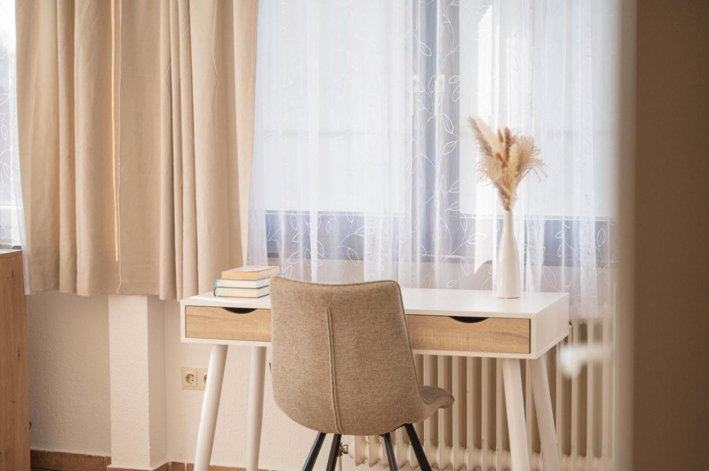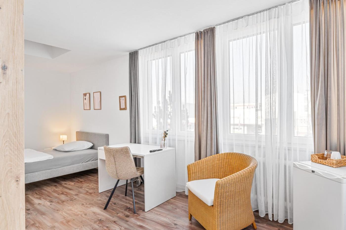 Standard Einzelzimmer. Providing free toiletries, this double room includes a private bathroom with a shower and a hairdryer. Meals can be prepared in the kitchen, which comes with a stovetop, a refrigerator, kitchenware and an oven. The double room provides soundproof walls, a tea and coffee maker, a seating area, a flat-screen TV with satellite channels, as well as ancourtyard view. The unit offers 1 bed. ;