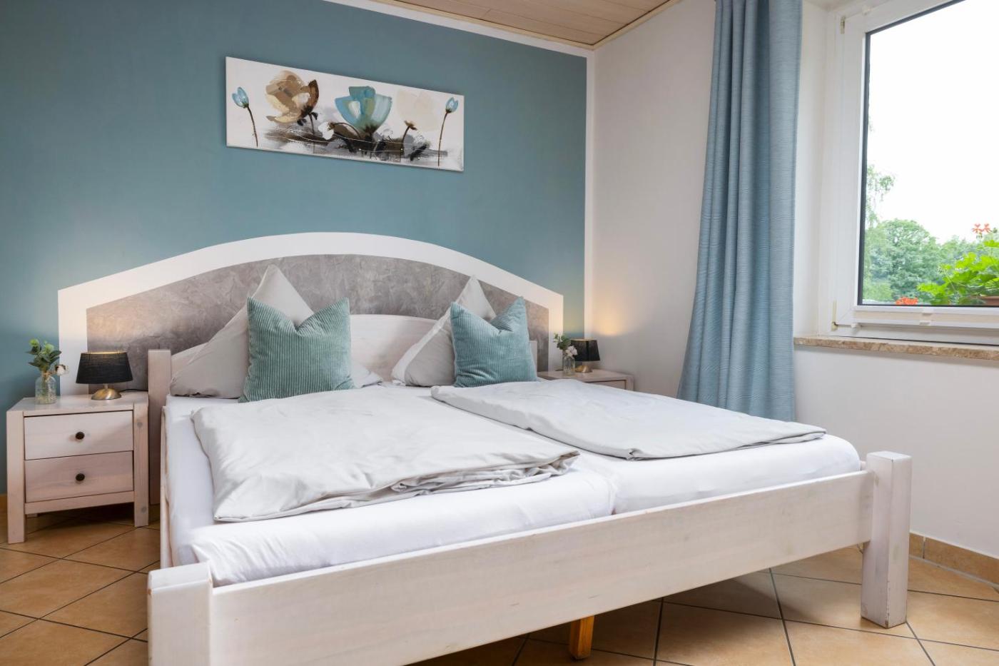 Zweibettzimmer mit Gartenblick. The twin room features a dining area, a wardrobe, a barbecue, a flat-screen TV, as well as garden views. The unit has 2 beds. ;
