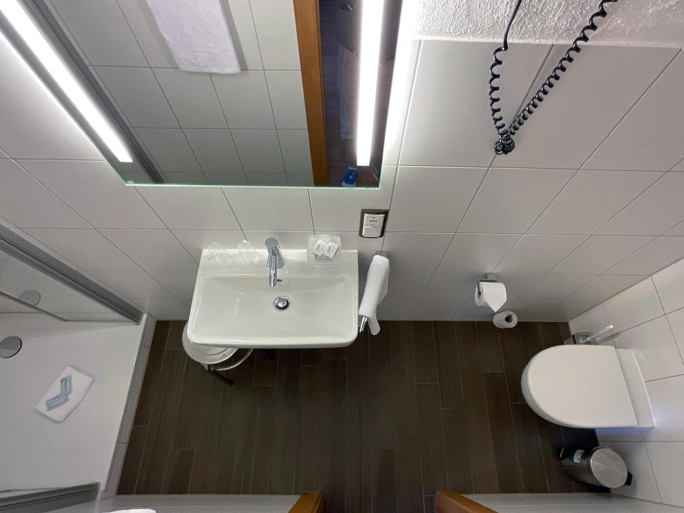 Einzelzimmer. Das Zimmer im klassischen Stil verfügt über einen Haartrockner im eigenen Bad.