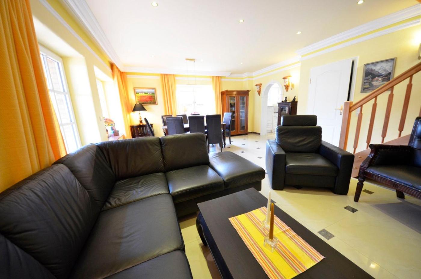Ferienhaus. This holiday homes standout features are the sauna and fireplace. Boasting 4 bedrooms and 4 bathrooms with a shower, this spacious holiday home has a well-fitted kitchen and a terrace. Guests will find a stovetop, a refrigerator, a dishwasher and an oven in the well-fitted kitchen. The holiday home also features a barbecue. Featuring outdoor furniture, this holiday home also offers a washing machine, a coffee machine and a flat-screen TV. The unit offers 4 beds.