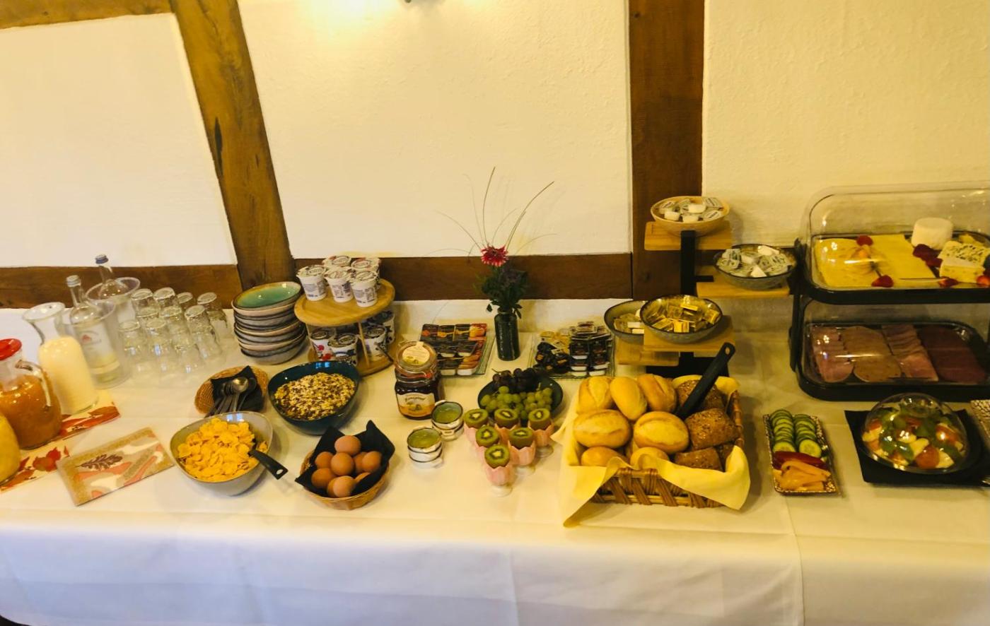 Ein als Buffet angebotenes Frühstück wird in der Unterkunft Hotel Rehkitz angeboten.
