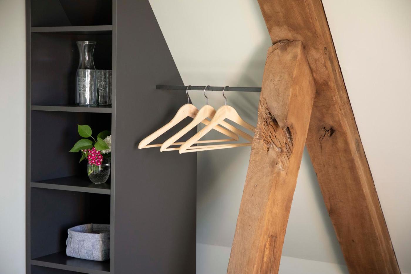 Deluxe Zimmer mit Queensize-Bett. Offering free toiletries, this double room includes a private bathroom with a shower and a hairdryer. The double room offers a flat-screen TV, a wardrobe, parquet floors, heating as well as garden views. The unit offers 1 bed. This double has a low ceiling of 2 meters and features a beam guide of 1.75 meters. ;