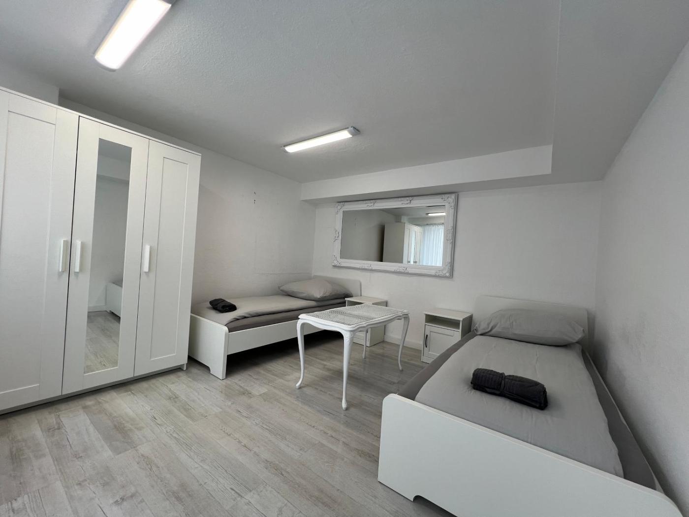 Zweibettzimmer mit Gemeinschaftsbad. Die Wohneinheit ist mit 2 Betten ausgestattet. ;