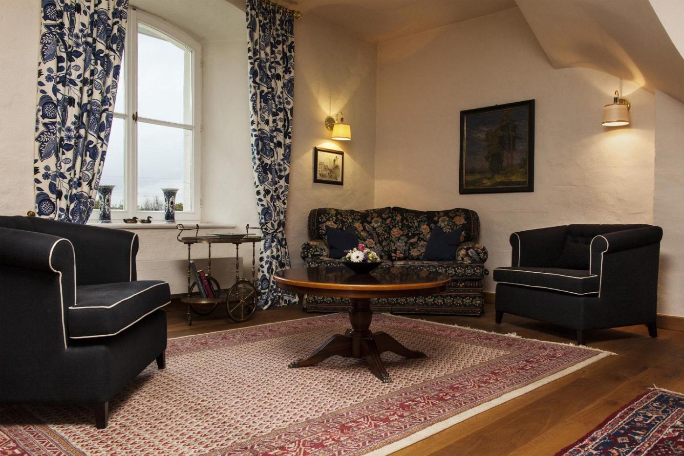 Main Castle Building Double Room. Elegantes Zimmer mit Möbeln im antiken Stil. Verfügt über einen TV, eine Minibar, Tee- und Kaffeezubehör und einen Sitzbereich. Die einzigartige Burgstruktur verleiht jedem Zimmer eine besondere Aufteilung. ;