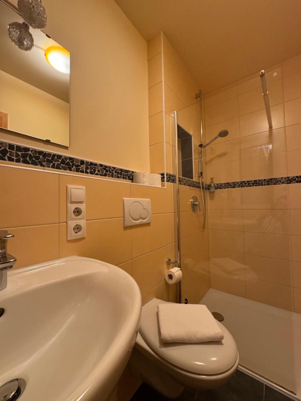Classic Vierbettzimmer. The spacious quadruple room features a wardrobe and heating, as well as a private bathroom boasting a shower. This quadruple room provides a flat-screen TV. The unit has 5 beds.