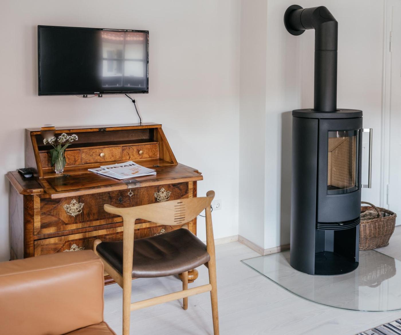 Apartment mit 1 Schlafzimmer. Ein Kamin macht Ihren Aufenthalt in dieser Ferienwohnung zu einem besonderen Erlebnis. Die Ferienwohnung umfasst außerdem einen eigenen Eingang, 1 Wohnzimmer, 1 separates Schlafzimmer sowie 1 Bad mit einer Dusche und Hausschuhen. Die Küchenzeile ist mit einem Kochfeld, einem Kühlschrank, einem Geschirrspüler und Küchenutensilien ausgestattet. Die Ferienwohnung bietet zudem eine Terrasse mit Gartenblick, eine Waschmaschine und einen Flachbild-TV. In der Wohneinheit befindet sich 1 Bett.