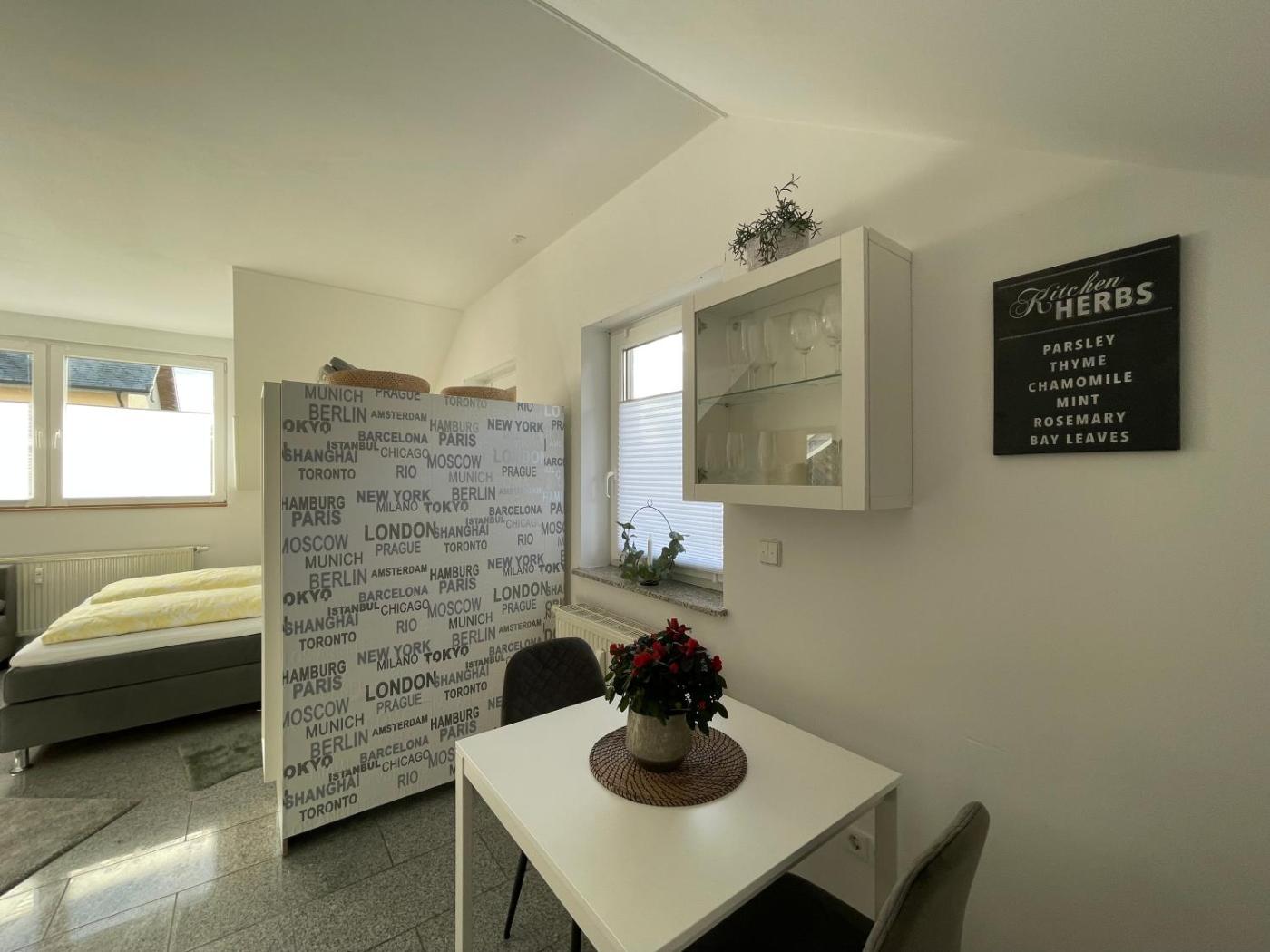 Apartment mit 1 Schlafzimmer. Guests can make meals in the kitchenette that features a stovetop, a refrigerator, kitchenware and an oven. The apartment features a washing machine, a tea and coffee maker, a dining area, a wardrobe, as well as a flat-screen TV. The unit has 1 bed.