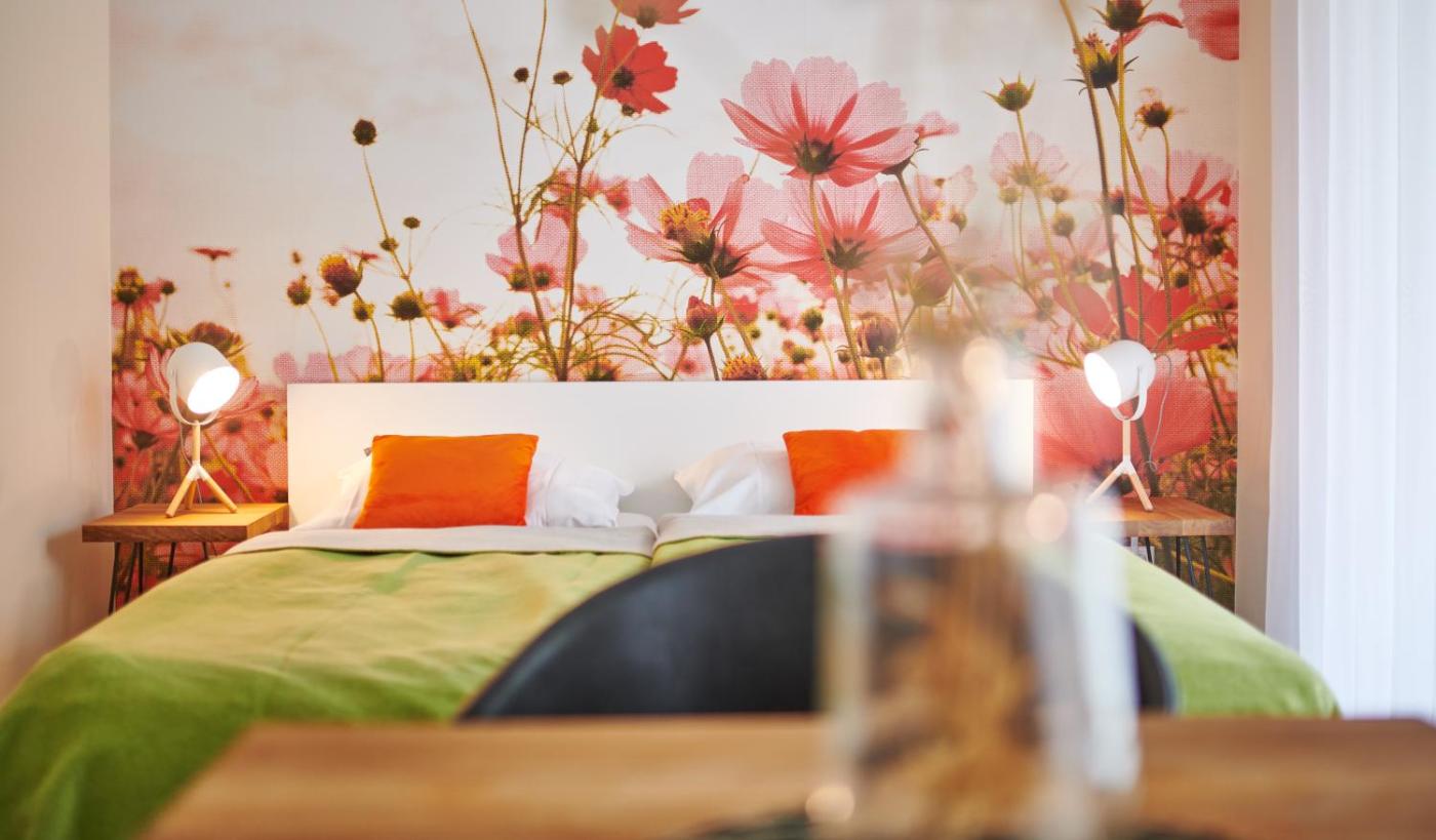 Doppelzimmer. Das Doppelzimmer verfügt über einen Kleiderschrank, Parkett sowie ein eigenes Bad mit einer ebenerdigen Dusche und einem Haartrockner. Die Wohneinheit ist mit 1 Bett ausgestattet.