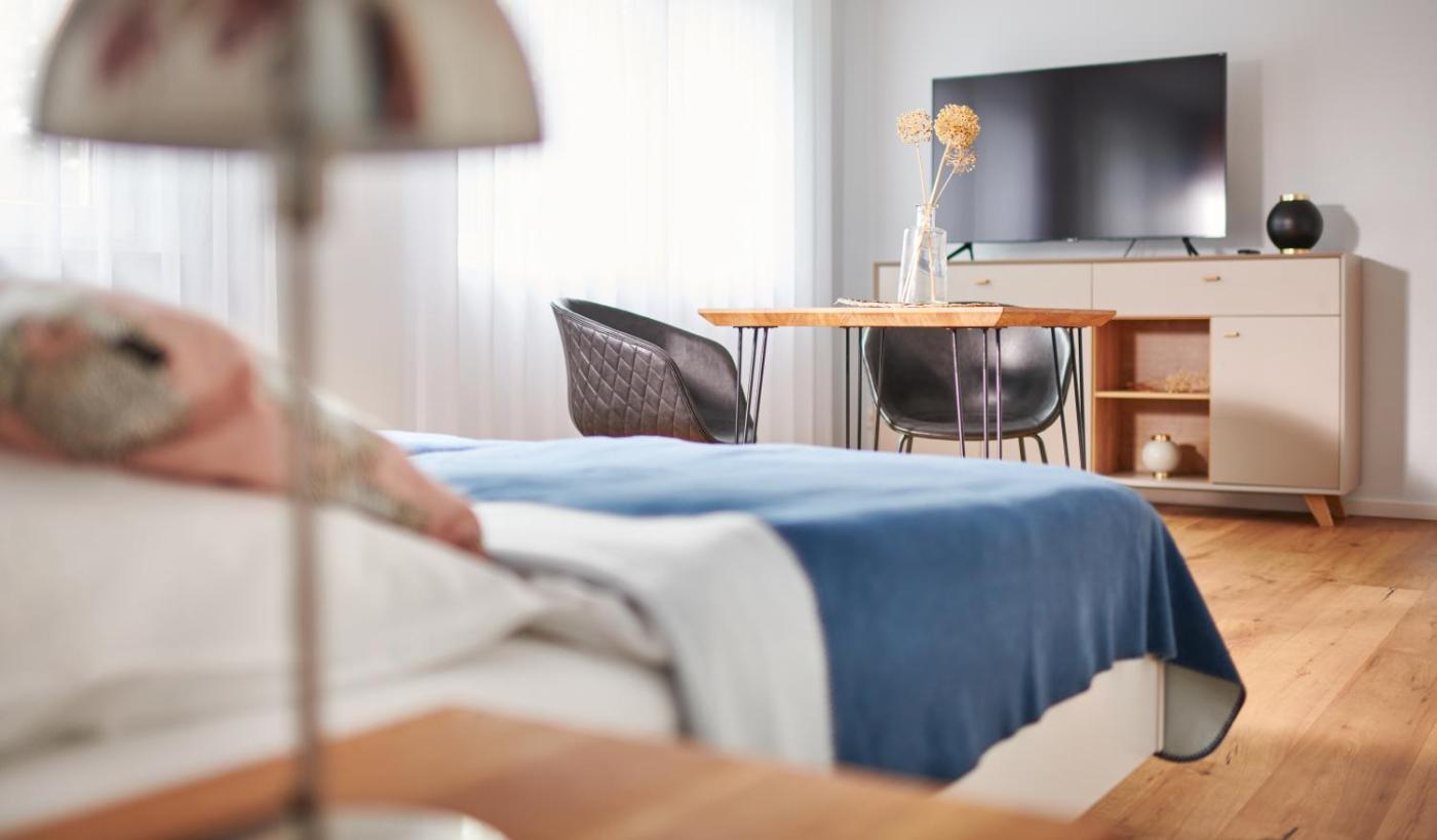Doppelzimmer. Das Doppelzimmer verfügt über einen Kleiderschrank, Parkett sowie ein eigenes Bad mit einer ebenerdigen Dusche und einem Haartrockner. In der Wohneinheit befindet sich 1 Bett. ;