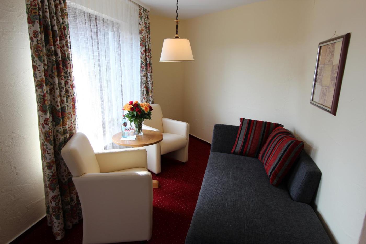 Dreibettzimmer. Dieses Dreibettzimmer verfügt über ein eigenes Bad mit einer Dusche und einem Haartrockner. Kostenlose Pflegeprodukte und Bademäntel liegen ebenfalls bereit. Das Dreibettzimmer mit Gartenblick bietet zudem einen Sitzbereich und einen Flachbild-Sat-TV. Wein Sekt steht ebenfalls für Sie bereit. Die Wohneinheit ist mit 2 Betten ausgestattet. ;