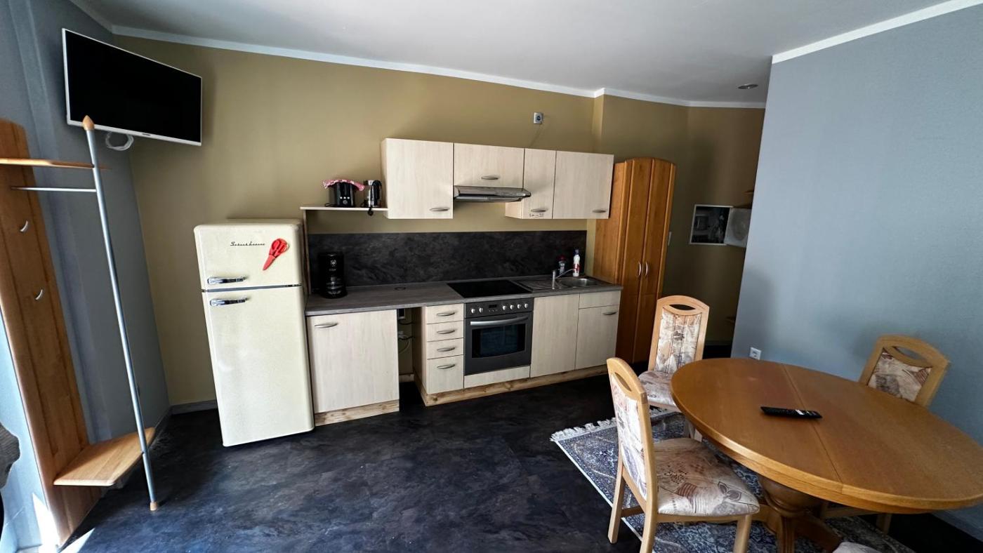 Apartment mit 1 Schlafzimmer. Featuring a private entrance, this apartment consists of 1 living room, 1 separate bedroom and 1 bathroom with a shower and a hairdryer. Guests can make meals in the kitchen that is equipped with a stovetop, a refrigerator, kitchenware and a toaster. Boasting a terrace with garden views, this apartment also provides a coffee machine and a flat-screen TV with satellite channels. The unit offers 2 beds. ;