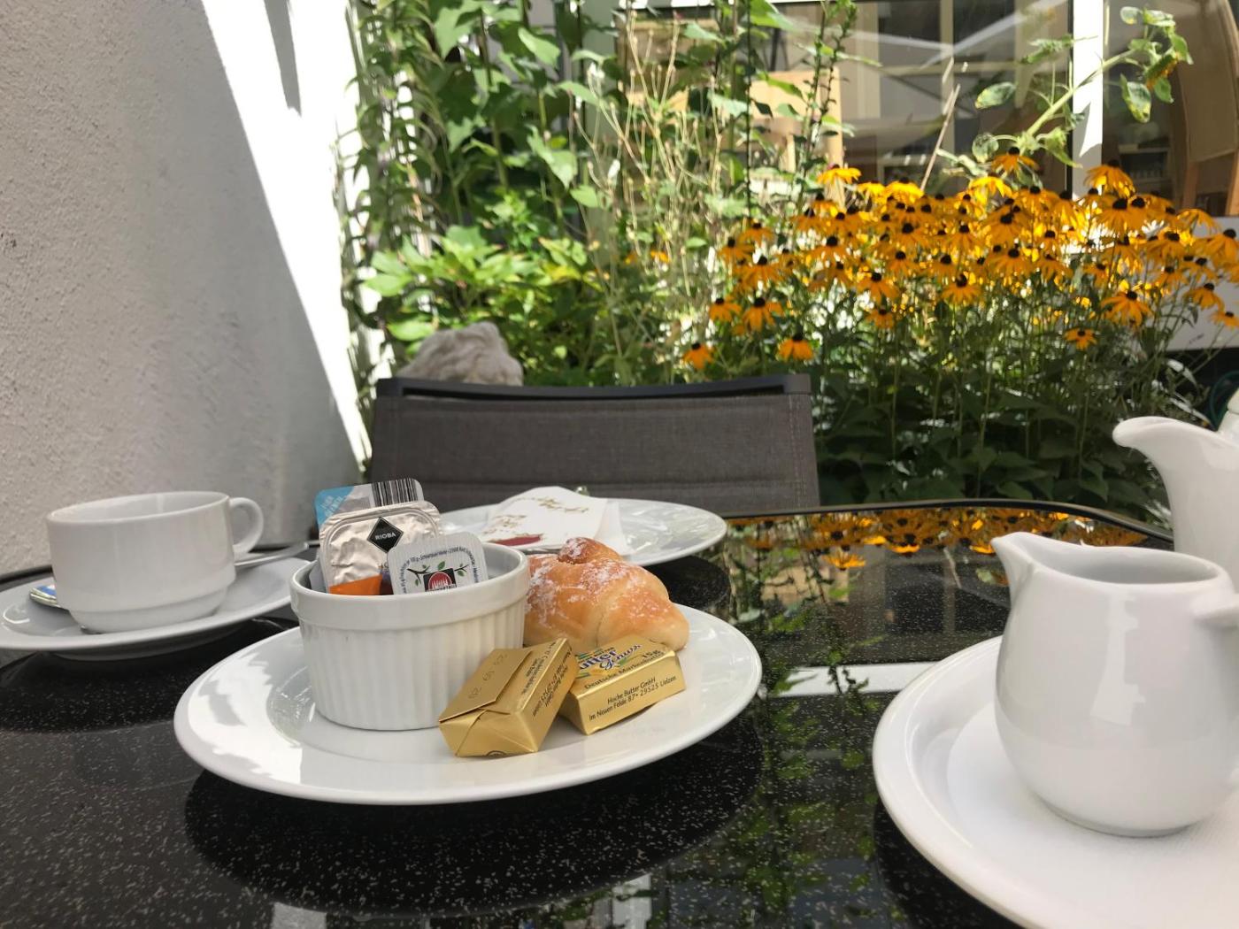 Das Frühstücksbuffet mit regionalen Spezialitäten wird täglich im Frühstücksraum oder im Wintergarten serviert.