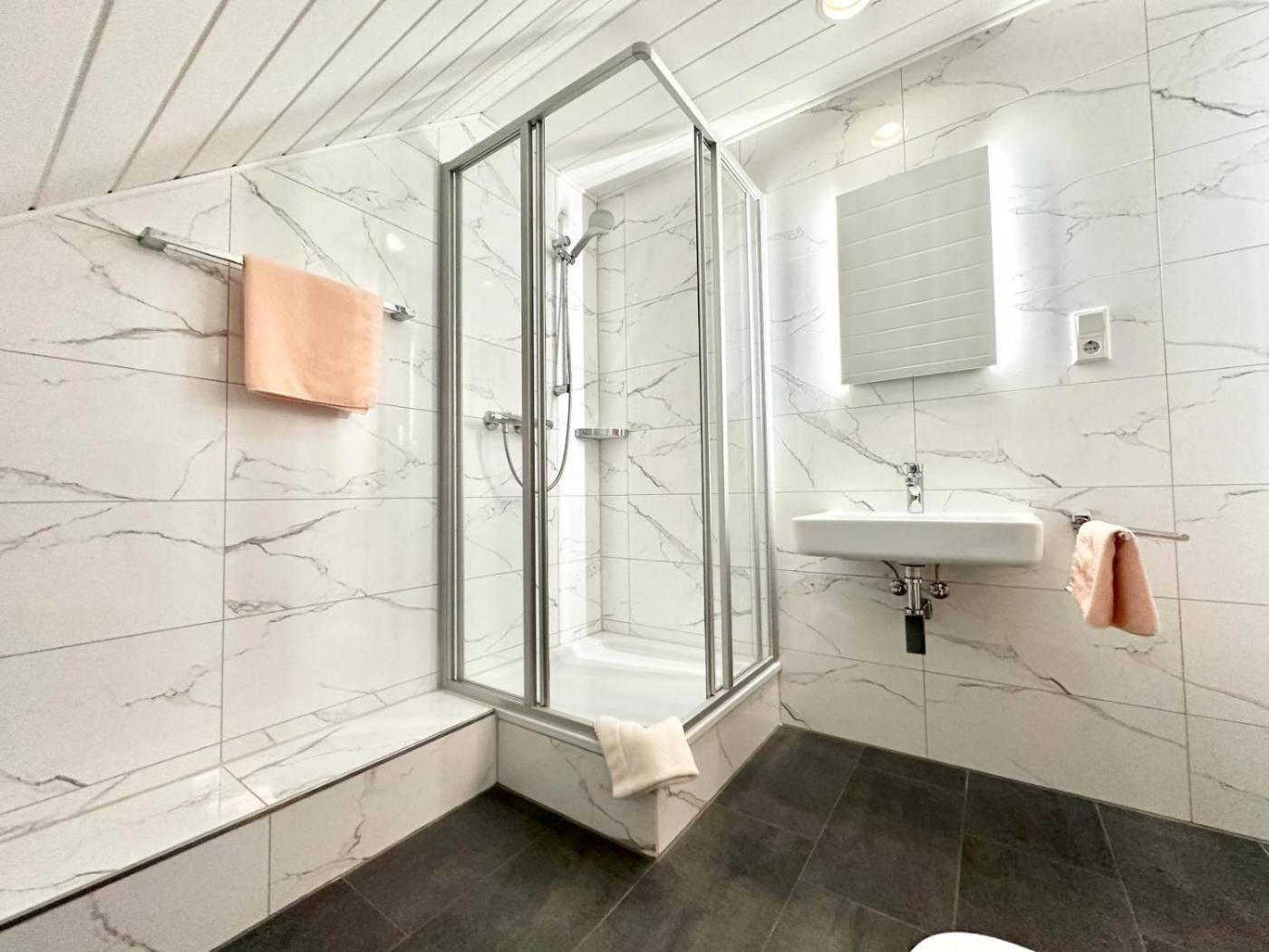 Einzelzimmer mit Bad. Providing free toiletries, this single room includes a private bathroom with a shower and a hairdryer. The single room provides soundproof walls, a seating area, a wardrobe, heating, as well as a flat-screen TV. The unit offers 1 bed. ;