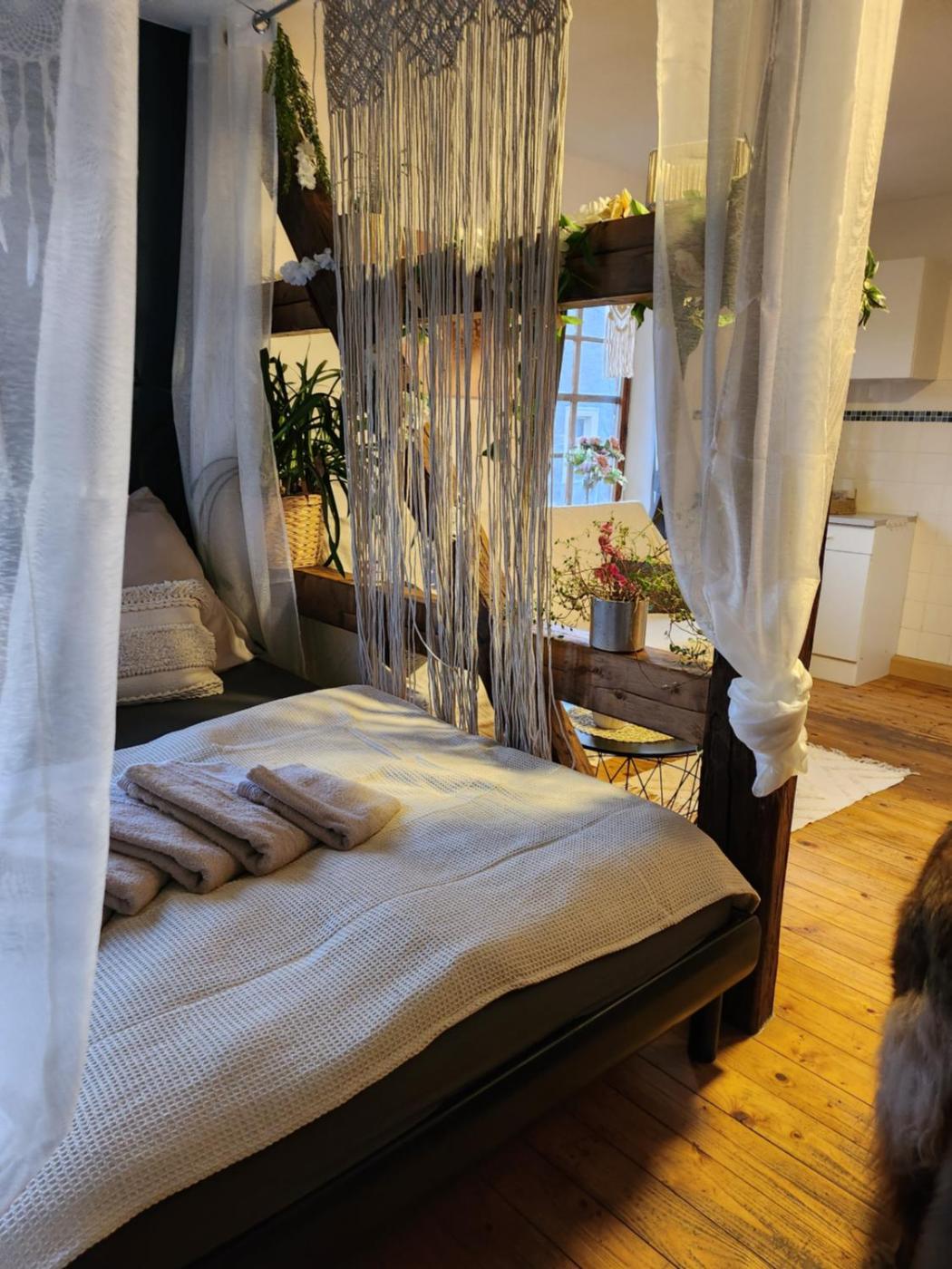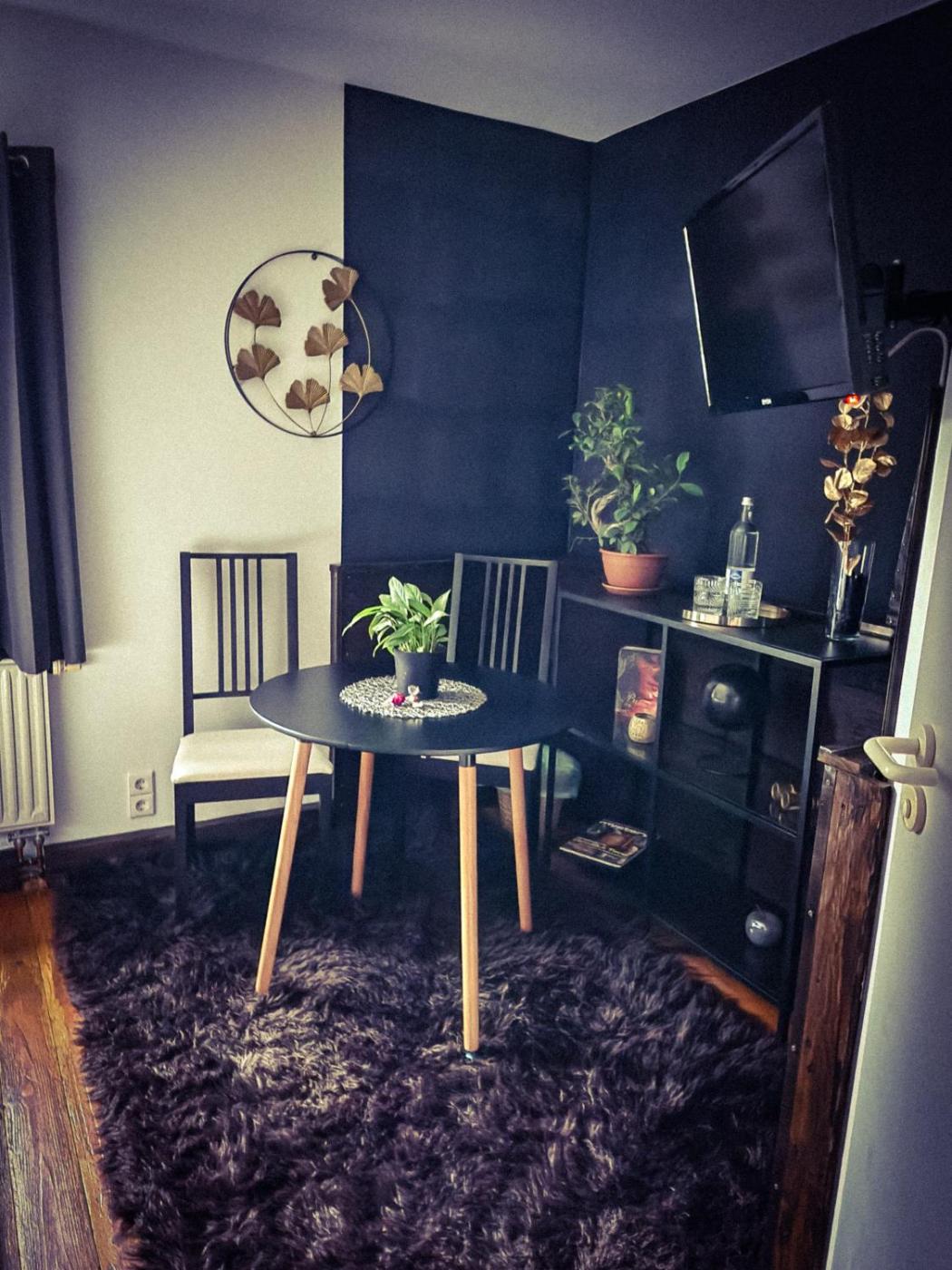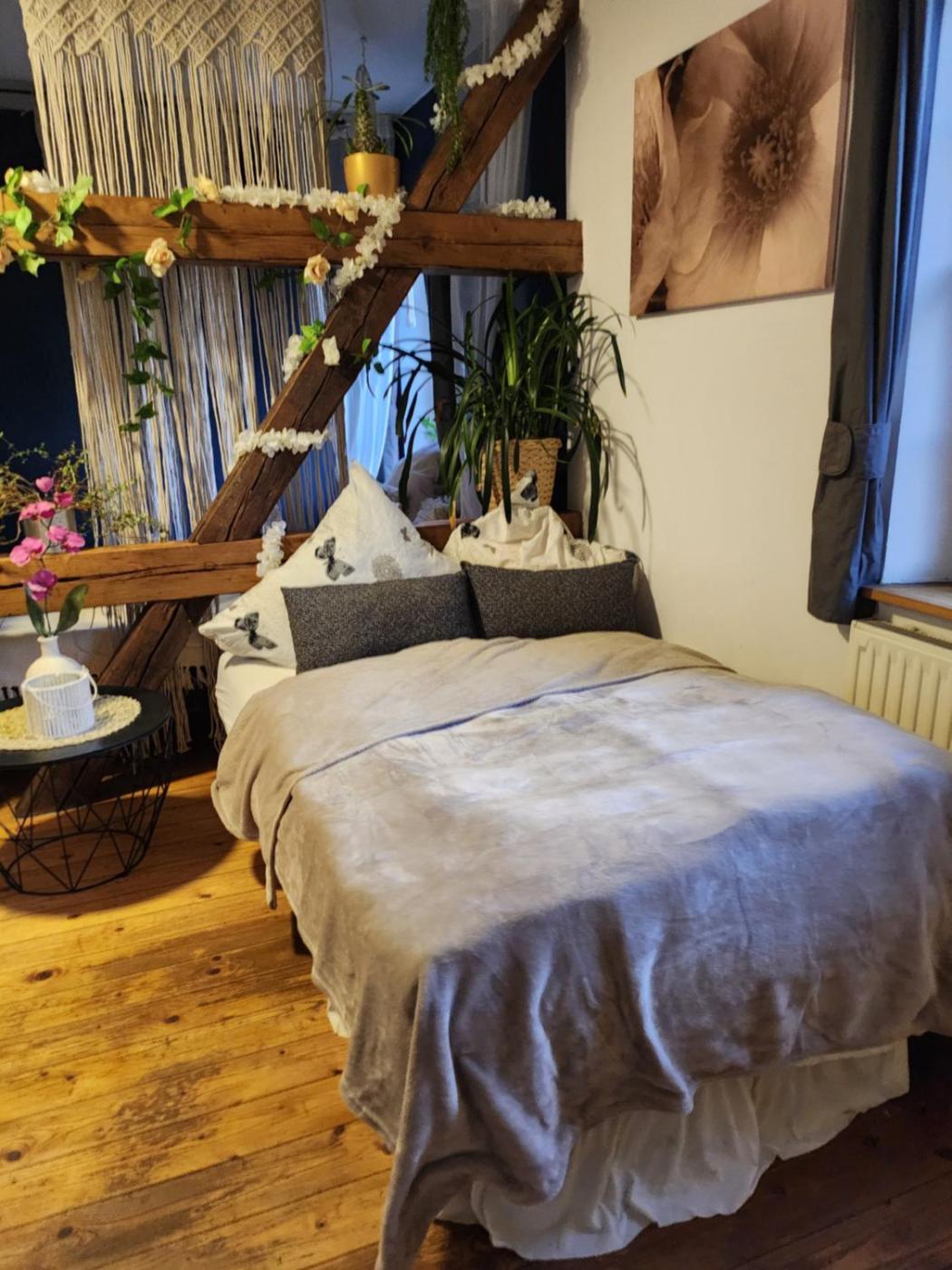 Großes Doppelzimmer. The double room offers a seating area, a dining area, as well as a private bathroom boasting a shower. Guests can make meals in the kitchen that has a stovetop, a refrigerator, a dishwasher and kitchenware. This double room has a washing machine, a tea and coffee maker, flat-screen TV with satellite channels, as well as winechampagne for guests. The unit has 1 bed.