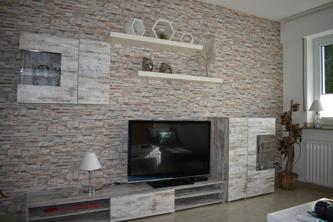 Apartment. This spacious apartment is comprised of 1 living room, 1 separate bedroom and 1 bathroom with a bath and a shower. Guests will find a stovetop, a refrigerator, a dishwasher and kitchenware in the fully equipped kitchen. The apartment also has a barbecue. Featuring a terrace, this apartment also offers a washing machine, a private entrance and a flat-screen TV with satellite channels. The unit offers 3 beds. ;