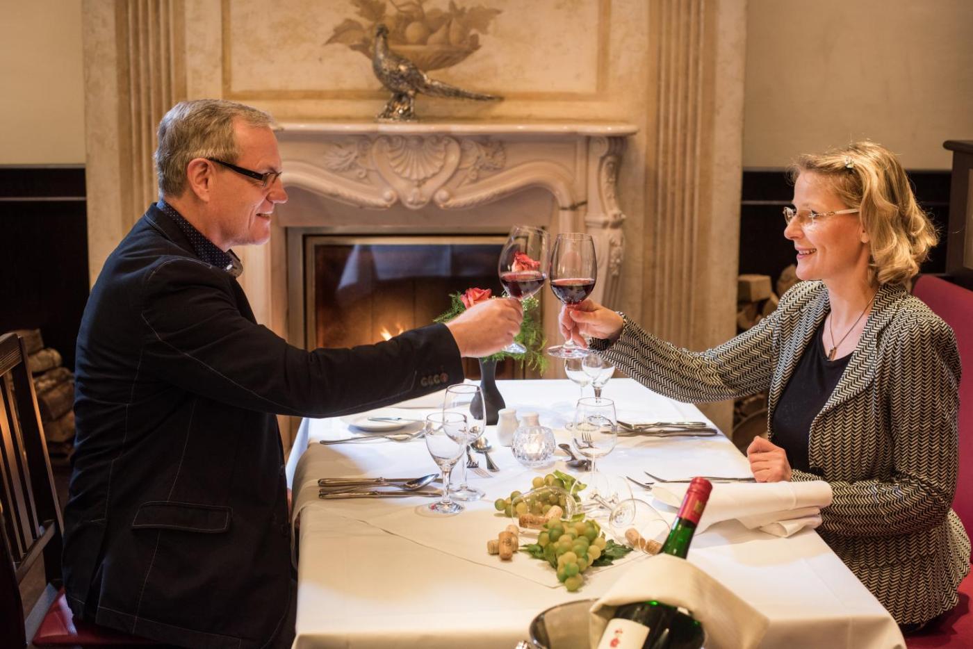 Morgens stärken Sie sich am reichhaltigen Frühstücksbuffet. Abends genießen Sie regionale Weine und eine Auswahl an herzhaften Gerichten im Restaurant Zum Löwen oder in der rustikalen Bar Zum Speicher. Entspannen Sie auch in der Lounge mit Kamin oder draußen auf der sonnigen Terrasse.