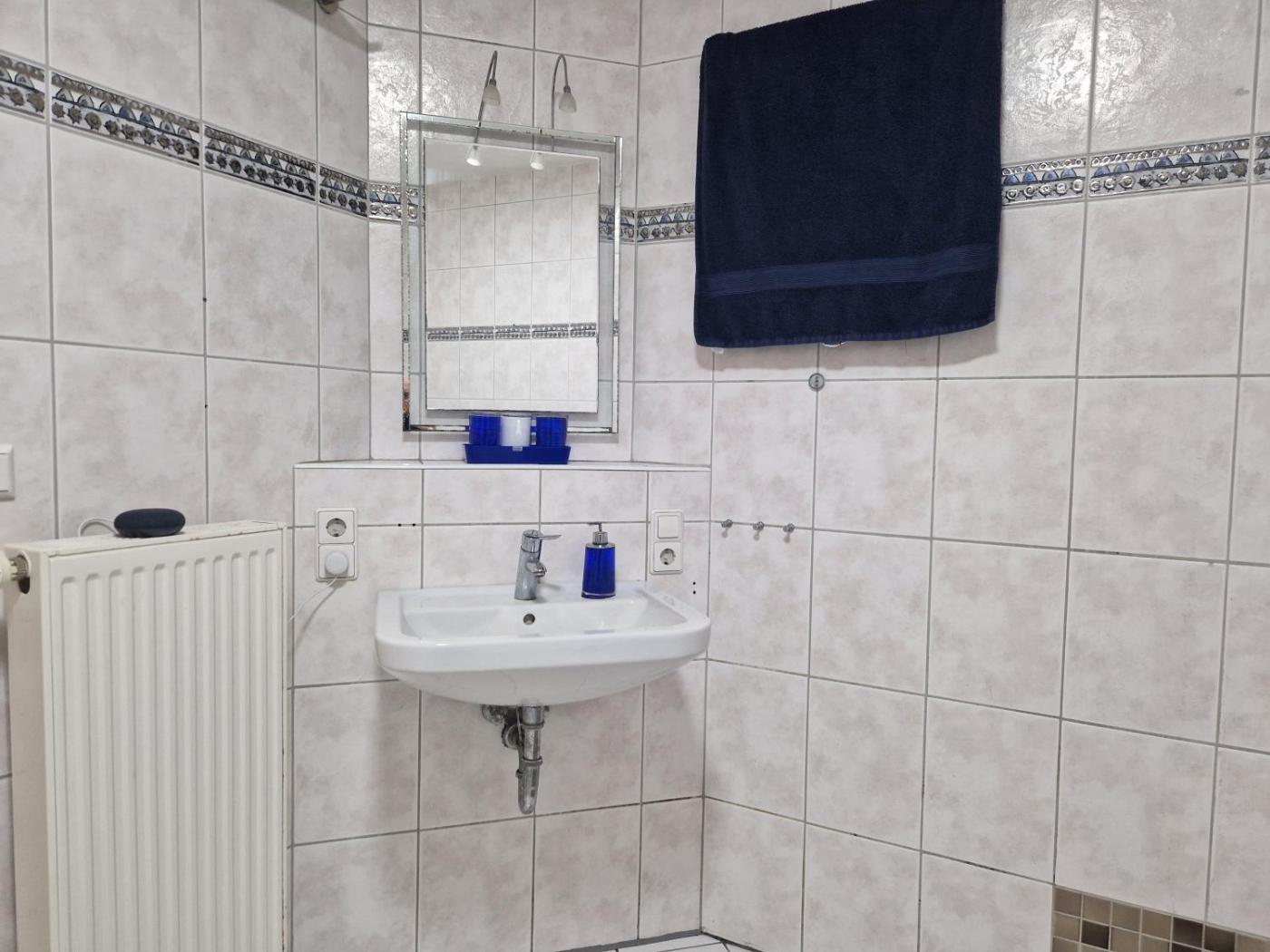 Doppelzimmer mit Gemeinschaftsbad. The double room offers a washing machine, a wardrobe, tumble dryer, heating and a flat-screen TV with streaming services. The unit offers 1 bed.