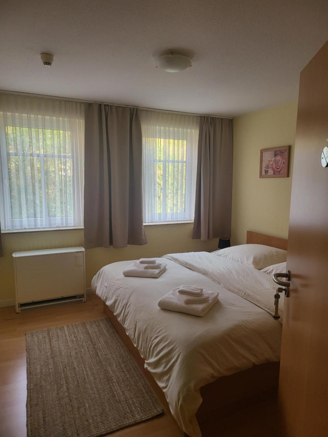 Doppel-Zweibettzimmer mit Dusche. This twindouble room has a wardrobe, heating, a flat-screen TV and a quiet street view. The unit has 1 bed. ;
