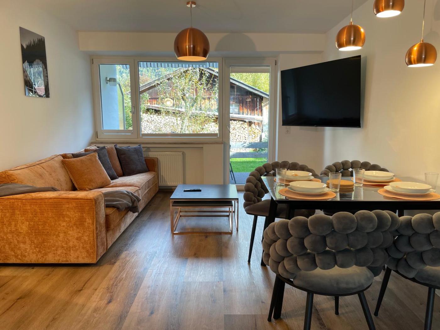 Diese Ferienwohnung mit einer Terrasse und Bergblick bietet 2 Schlafzimmer, ein Wohnzimmer, einen Flachbild-TV, eine gut ausgestattete Küche mit einem Kühlschrank und einem Geschirrspüler sowie 1 Badezimmer mit einer Dusche. In dieser Ferienwohnung werden Handtücher und Bettwäsche zur Verfügung gestellt.