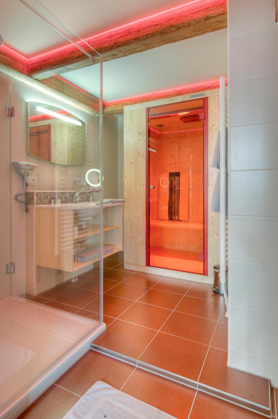 Junior Suite mit Sauna. Diese Unterkunft verfügt über eine Wellnessdusche, eine Infrarotsauna und einen beleuchteten Kosmetikspiegel. ;